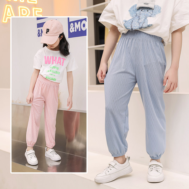 Children's ice wire mosquito pants summer thin boy pants hollow breathable outside wearing girls' lantern pants