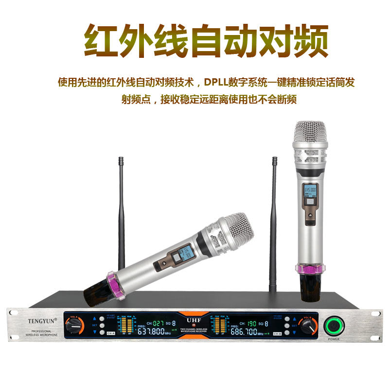 U-segment high-fidelity anti-whistling metal hand-held one-to-two wireless microphone stage performance home K song microphone