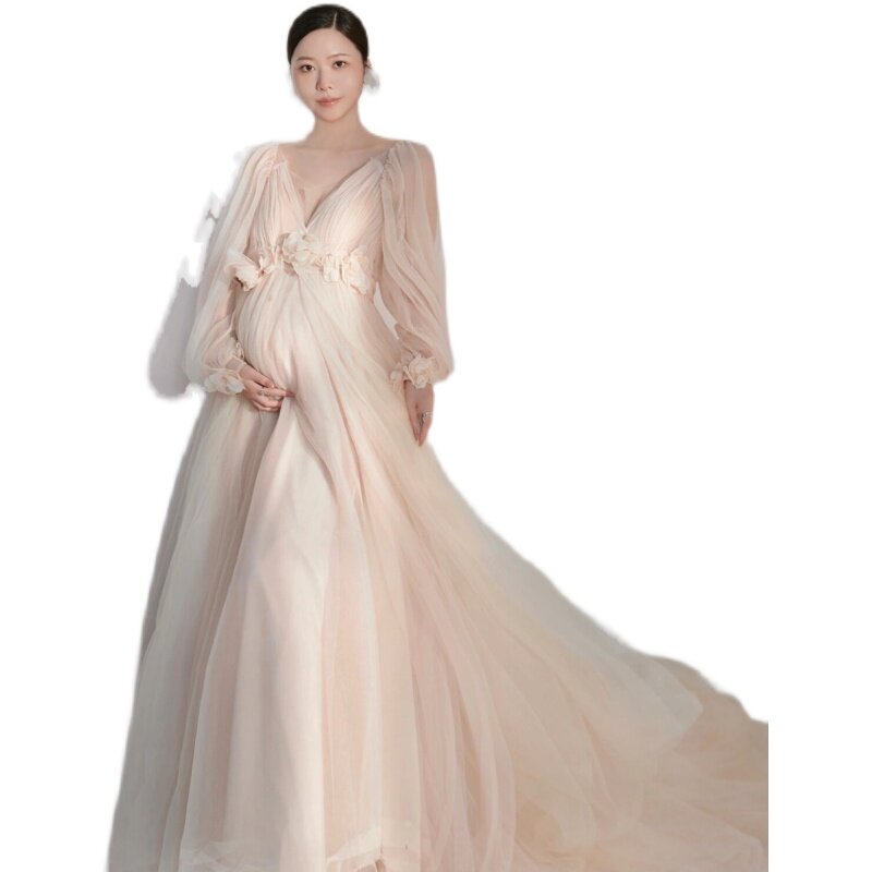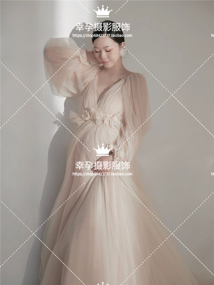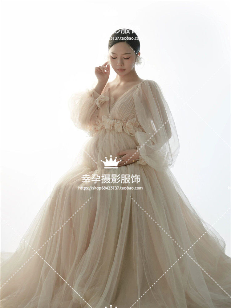 Photo studio maternity photo clothing new aesthetic temperament high-definition champagne mesh dress pregnant mother big belly photography photo