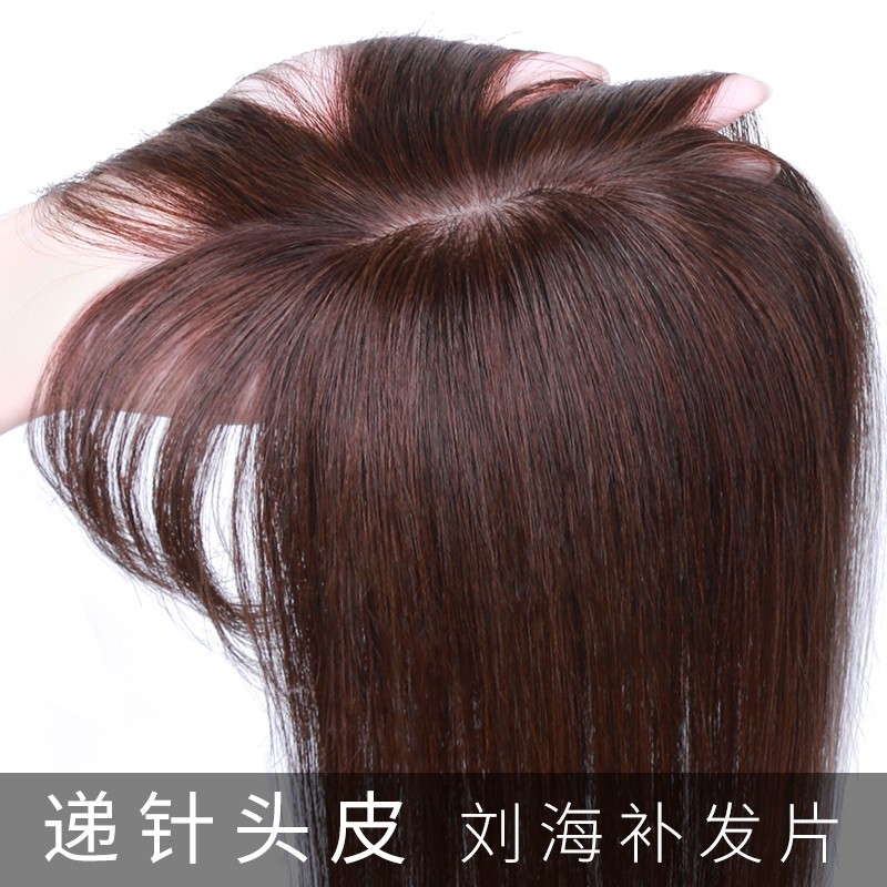Real Hair Fake Hair Piece of the top of the head Hair Tonic for older moms covered with white hair with a slice of untraceless hair.