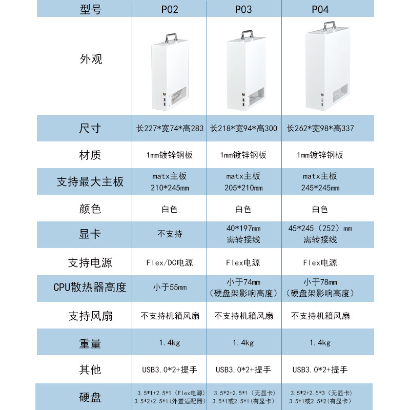 Tamer P02 P04 Portable ITX Chassis Matx Compact Mini Itx White Side Transparent Small Chassis