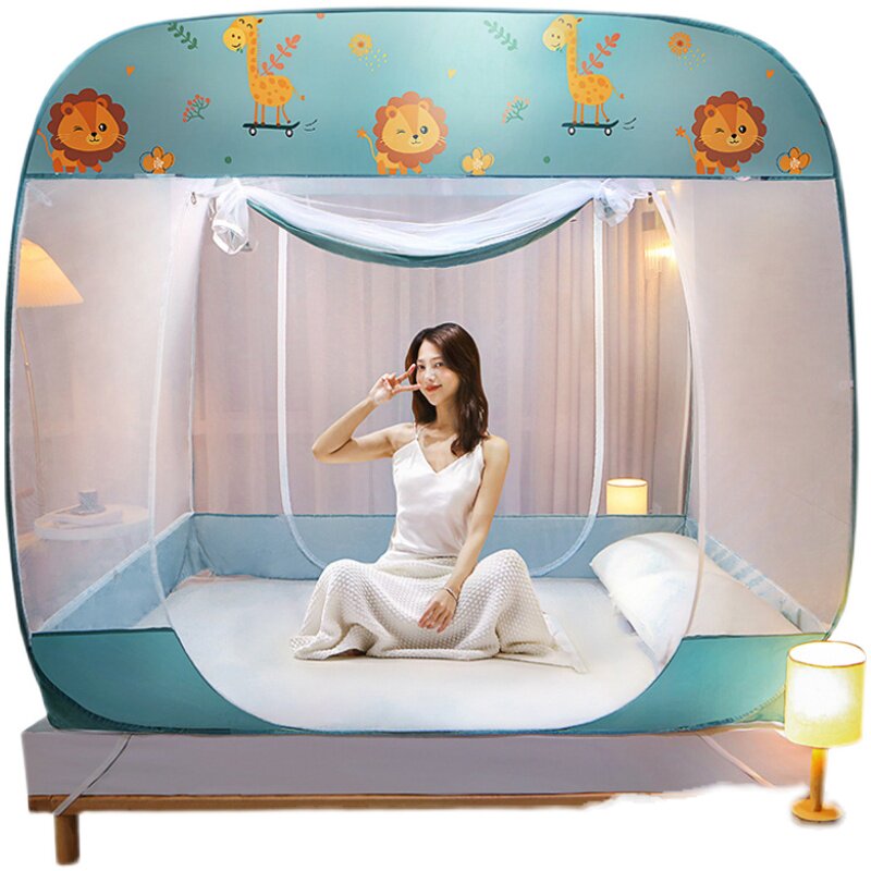 Three-door pattern mosquito net home bedroom 135*200*140*190 tatami yurt anti-fall children back to the bottom