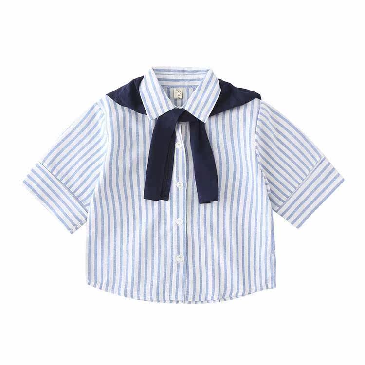 Grape Korean parent-child summer dress detachable navy collar vertical striped shirt trendy loose mother-child dress