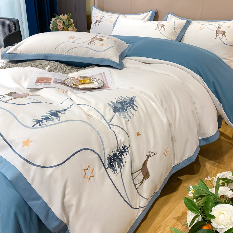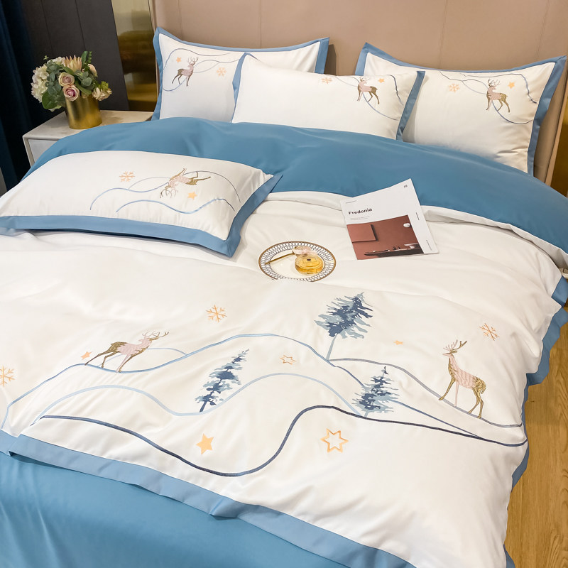 Light lavish and simple pure cotton bed with supplies four sets 100 All cotton Nordic Wind Three-style bed group Quilt Cover