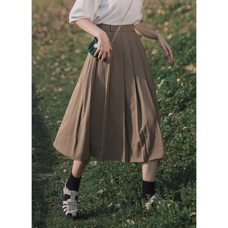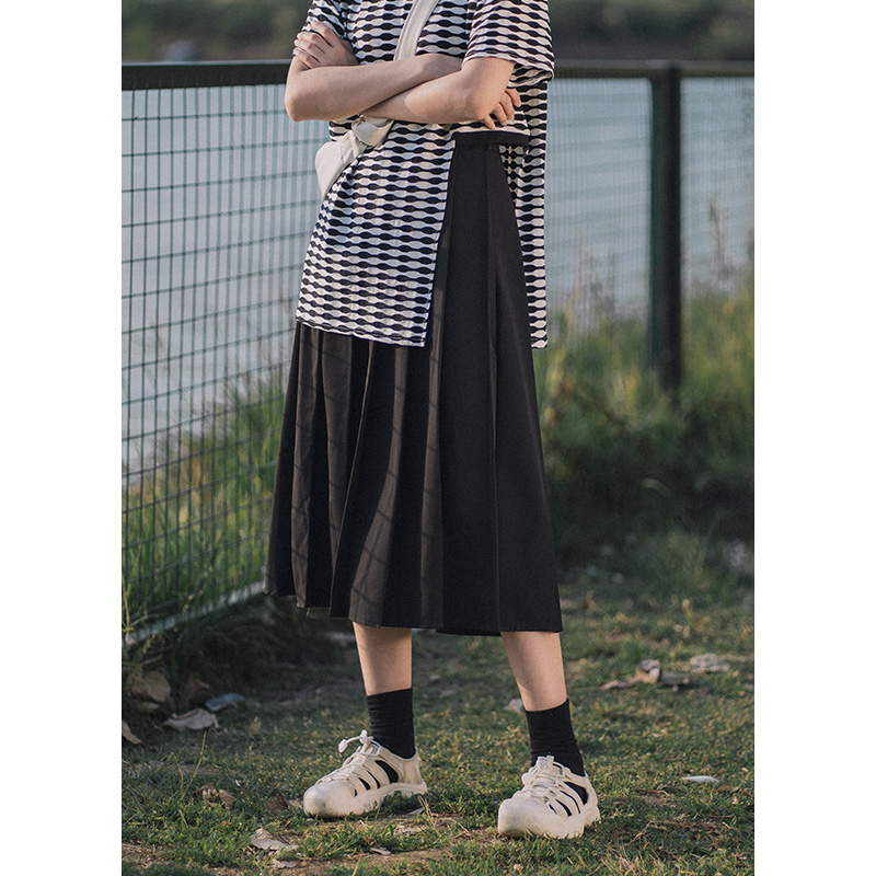 High waist A word plexigo skirt woman 2022 new black retro minimalist slim 100 hitch long version half body dress summer