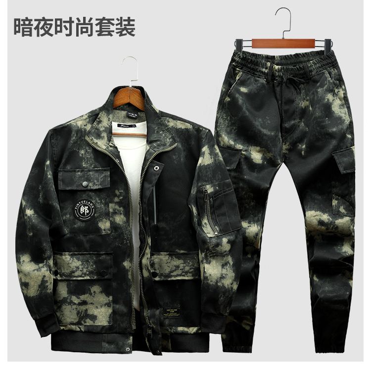 Work clothes suits men and women spring and autumn wear-resistant labor protection clothing welding clothing construction site outdoor training camouflage clothing suits