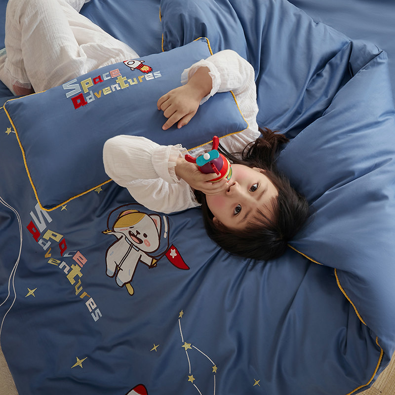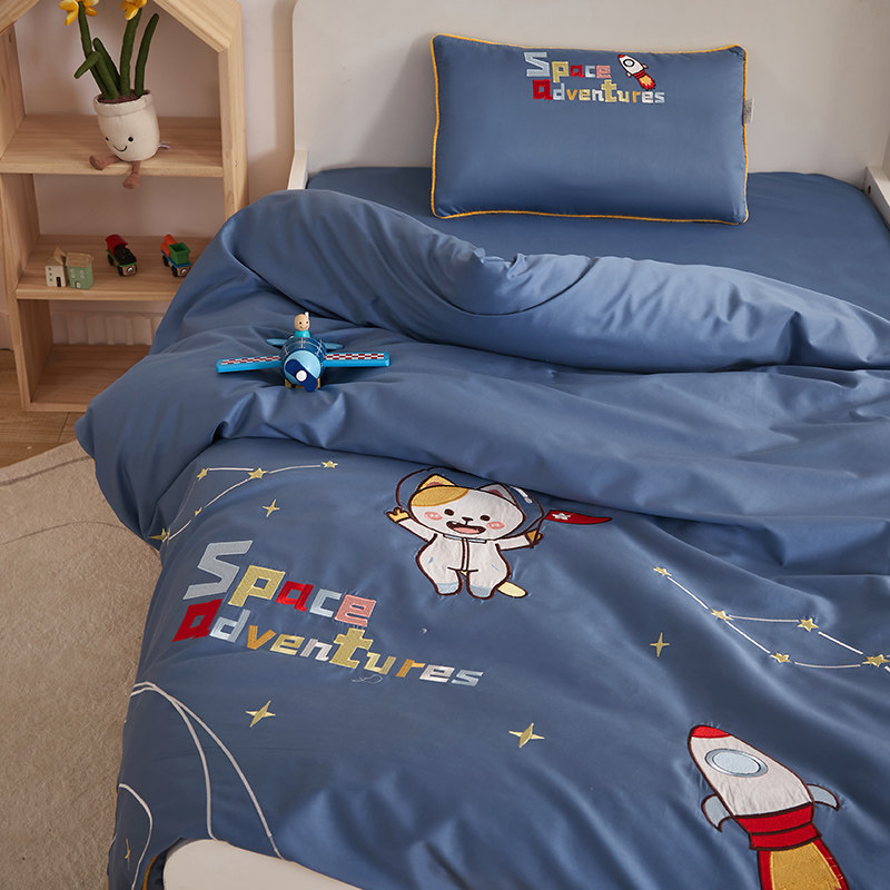Class A children's cartoon 60 long-staple cotton three-piece cotton astronaut quilt cover kindergarten bedding sheets