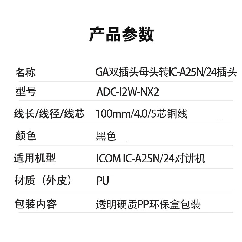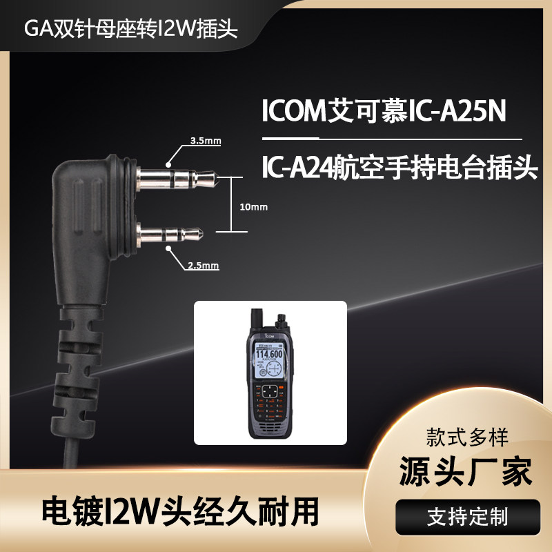 Aviation flight headset to ICOM Aikemu IC-A25N ICA24 aviation handheld walkie-talkie audio cable