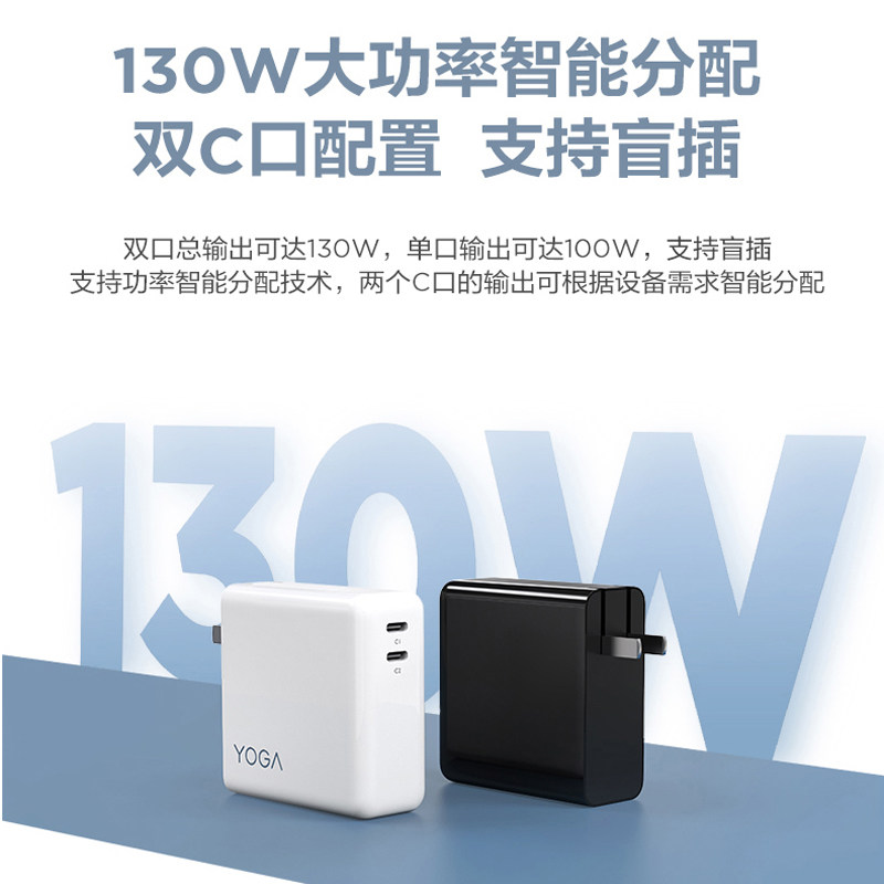 Lenovo YOGA power supply adapter CC130 dual connector type-c nitride gallium 130W fast charging small new air deliver laptop charger GaN portable phone tablet