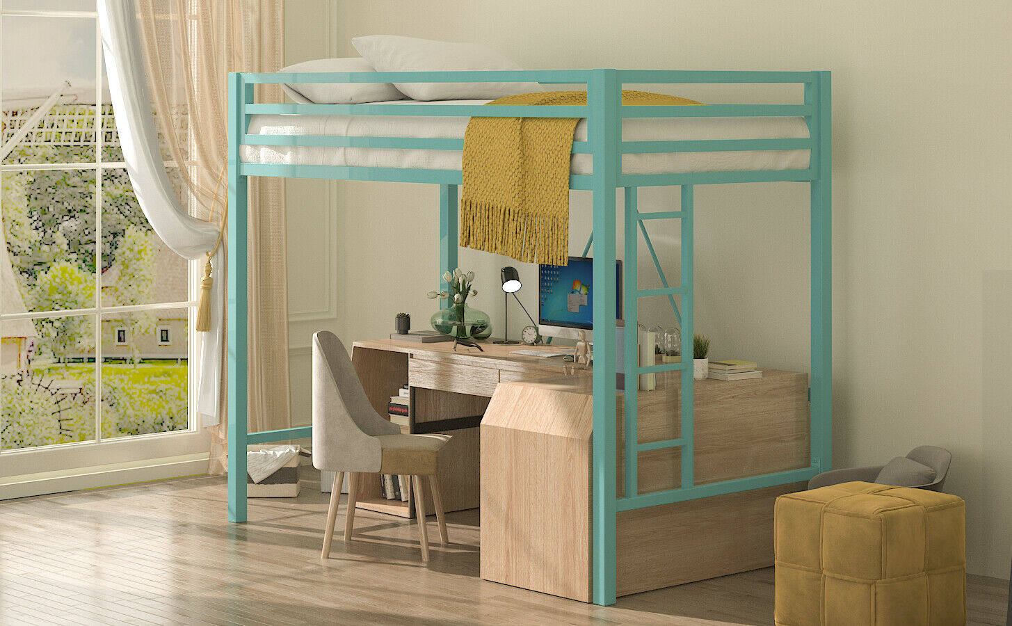 loft bed lower empty single upper bed small family type elevated bed attic room with children's bed high and low bed adult semi-high bed
