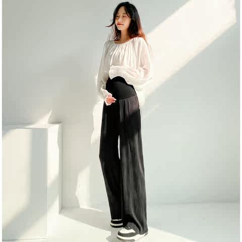 Pregnant Woman Pants Summer Thin loose straight drum pants outside with wide leg pants spring and summer long pants Belly Three Mansion Pleated Pants