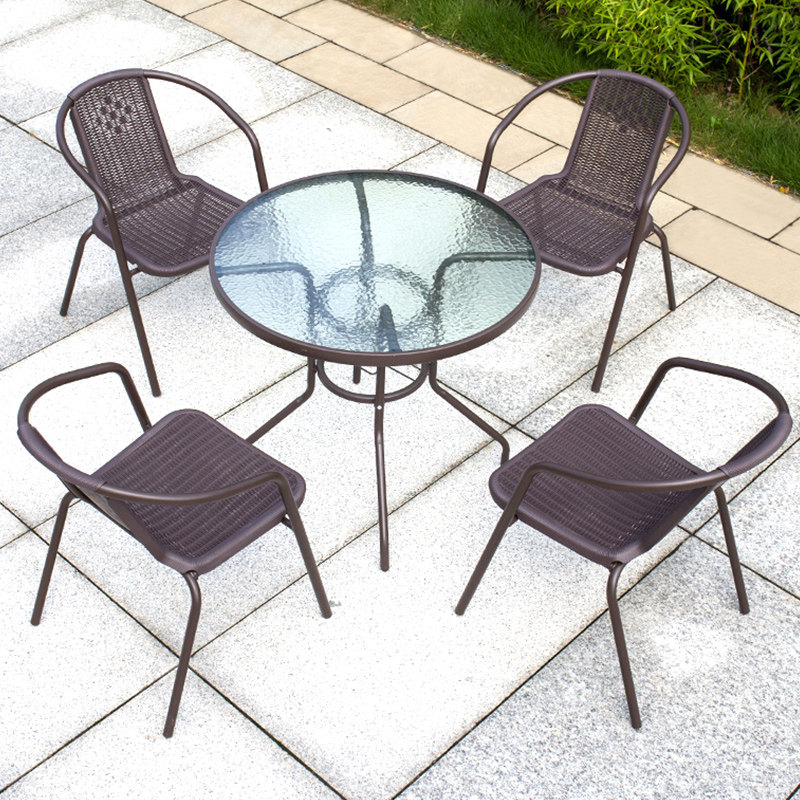 Outdoor table and chair courtyard combined with umbrella suit Waterproof sun and open-air garden vine chair three pieces of milk tea shop