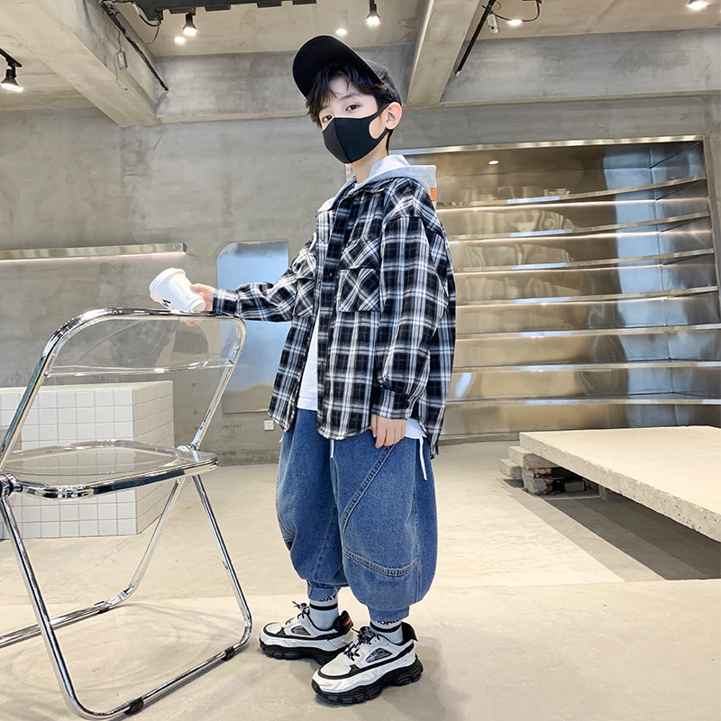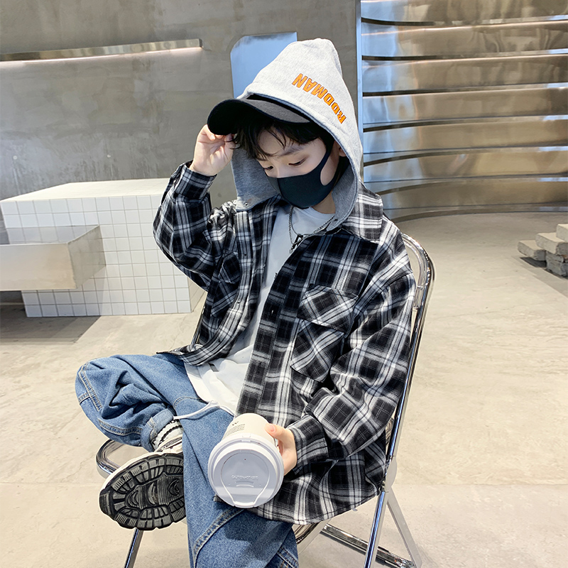 Boy Plaid Shirt Spring 2023 New Tide Children Spring Dress Loose Long Sleeve Shirt CUHK Boy Spring Autumn Jacket