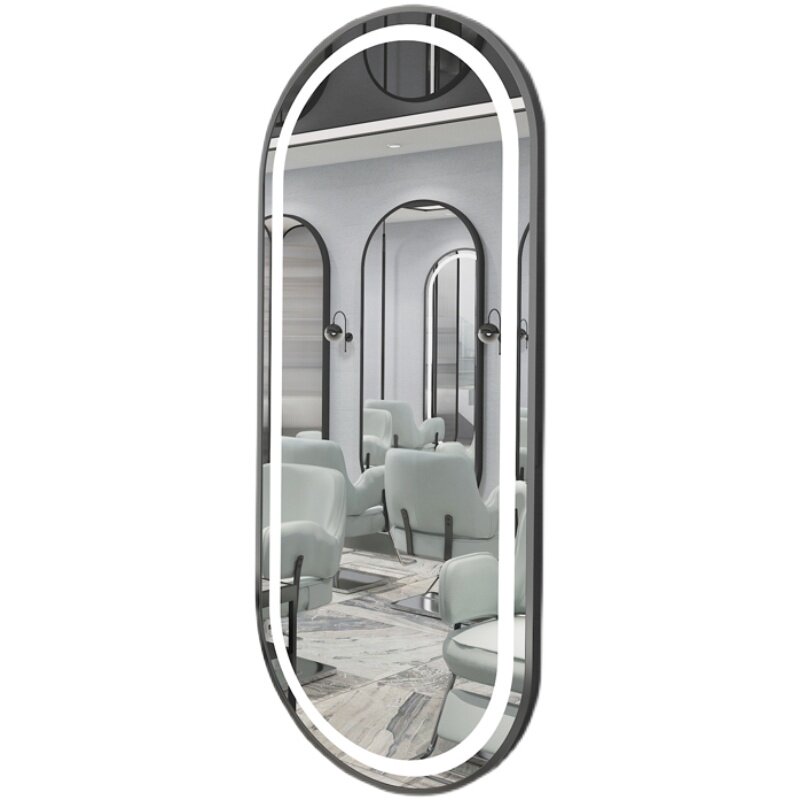 Barber shop mirror hair salon perm dyeing special wall-mounted hairdressing mirror table single-sided floor with smart light mirror led