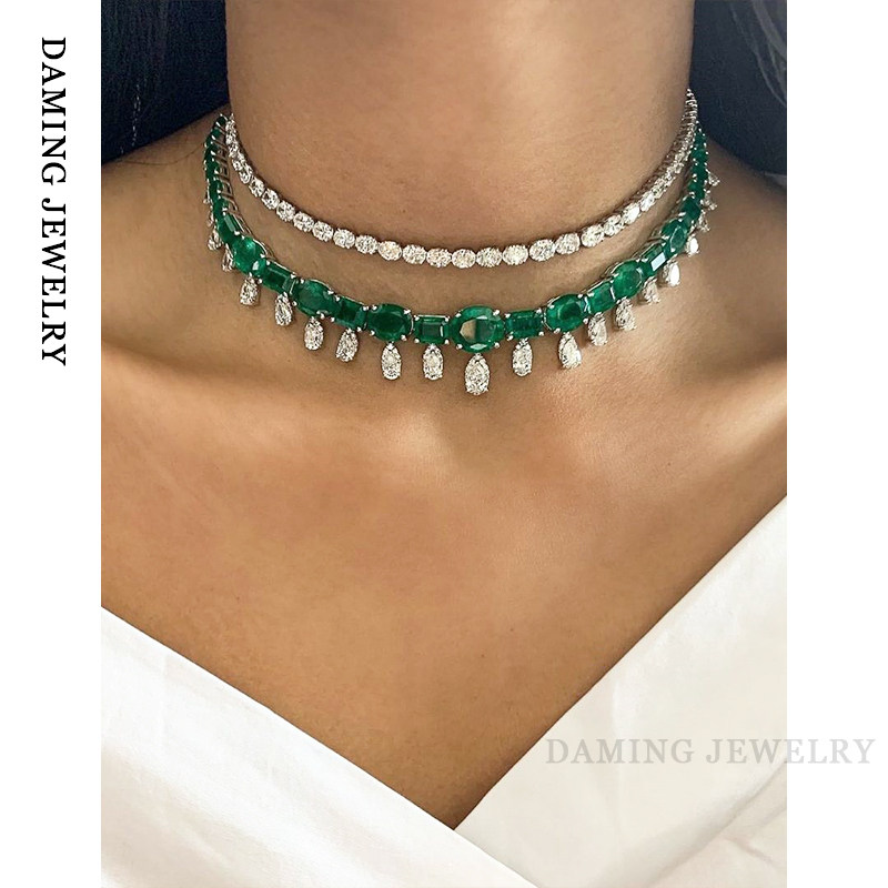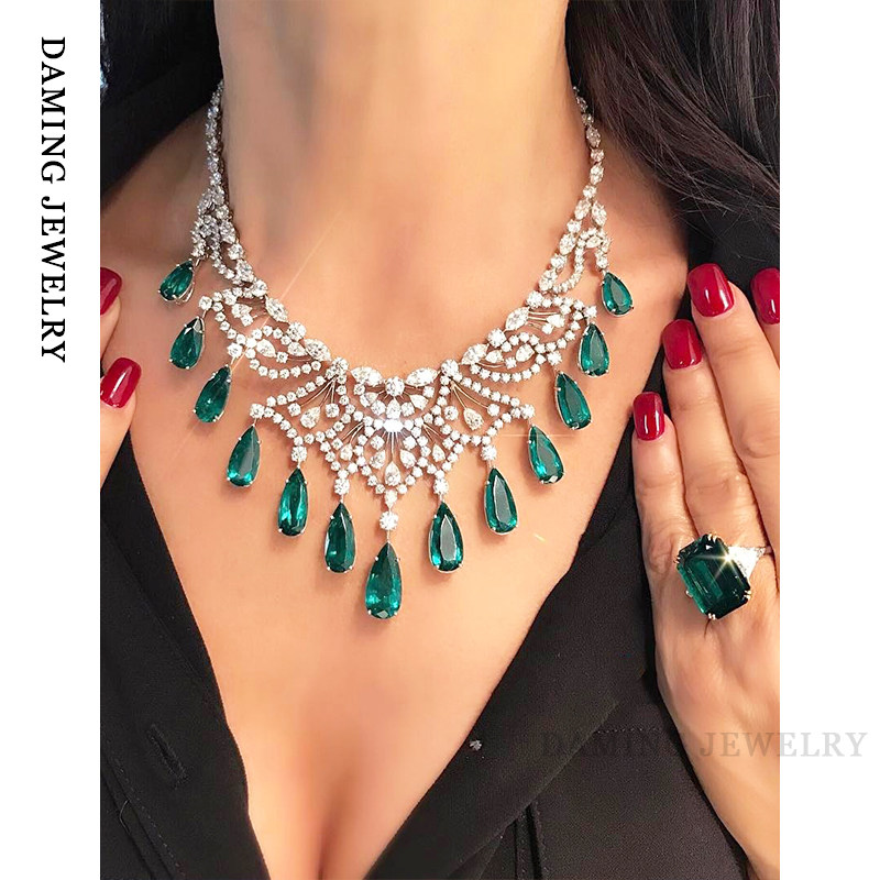 Big Ming India International Jewellery Show Straight Play in the Drain Palace Ancestral Mother Green Bexi Red Treasure Blue Treasure Super Shiny Ornament Neck Chain-Taobao