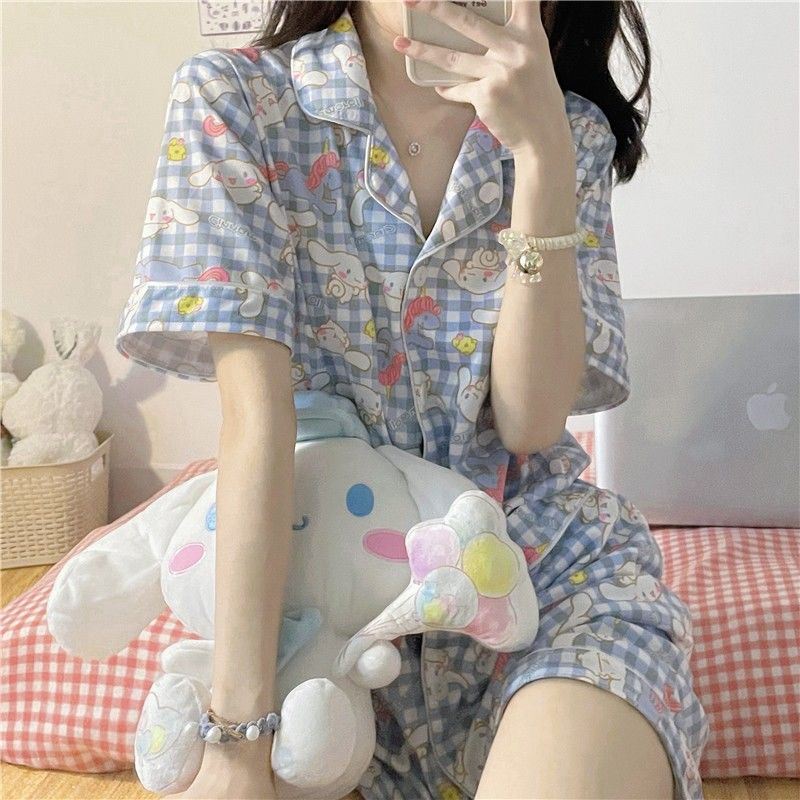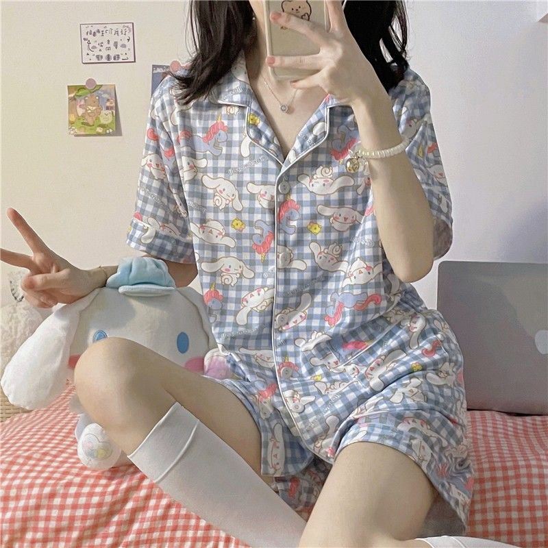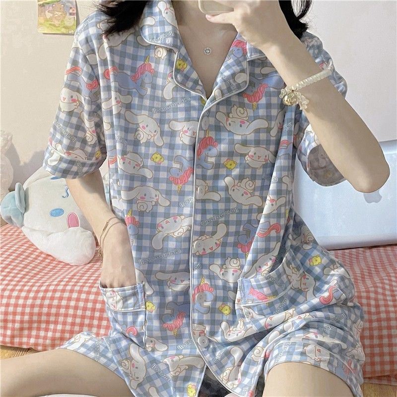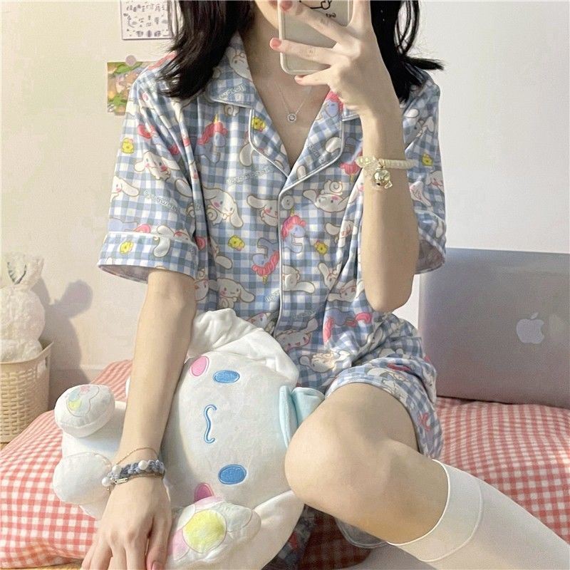 Pajamas Women Summer Shorts Shorts Shorts Summer Short Sleeves Shorts Cardiovert Cubs Sweet teenage girl Home Clothing Suit Tide