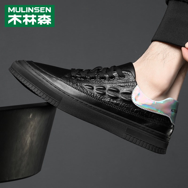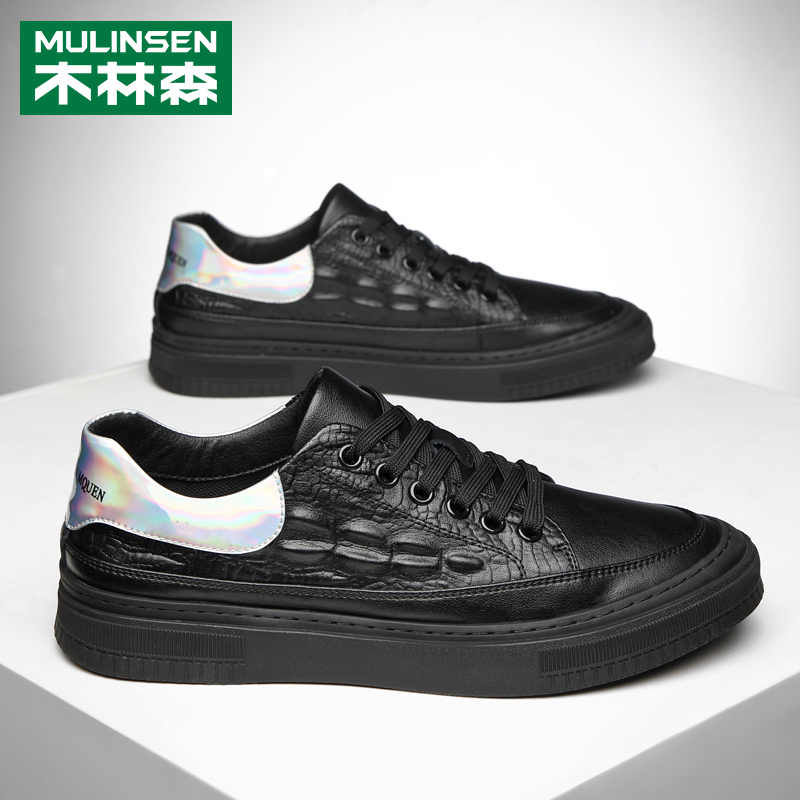 Wood Linson Men Shoes Summer Casual Leather Shoes Men's Inron Trend 100 Hitch Genuine Leather Thick Bottom Crocodile Tattoo Black Board Shoes
