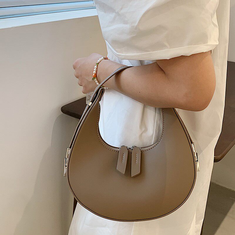 France Cone Koery Leather Bag Woman 2023 new tide - hundred and one - shoulder armpit explode the ocean half moon bag