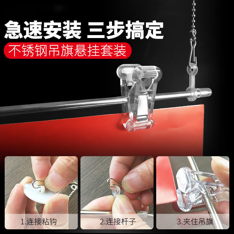 Flagpole poster hanging chain clip card bar stainless steel hanging flag three-piece advertising pole 60 hanging hook CM