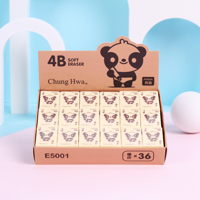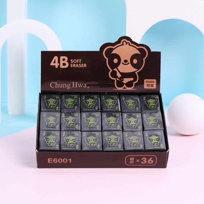 Zhonghua brand panda eraser 4B pupil art yellow pencil eraser black cartoon stationery eraser box