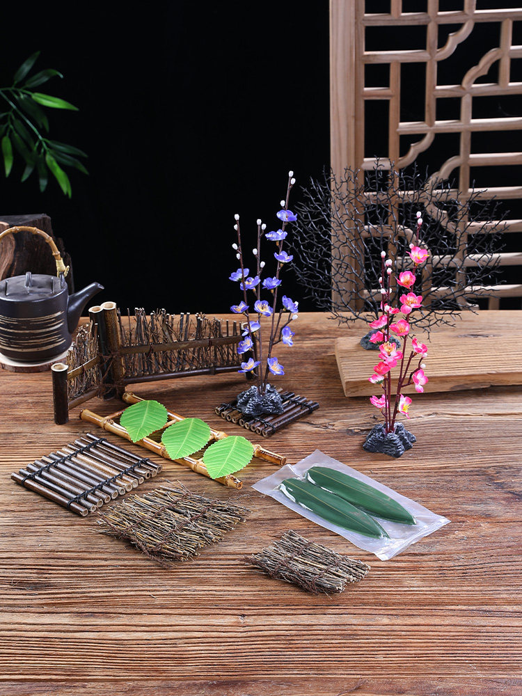 Barbecue hot pot plate decoration flowers and plants bamboo fence Japanese sashimi platter bamboo silk woven bamboo retro fence ornaments
