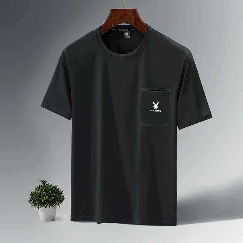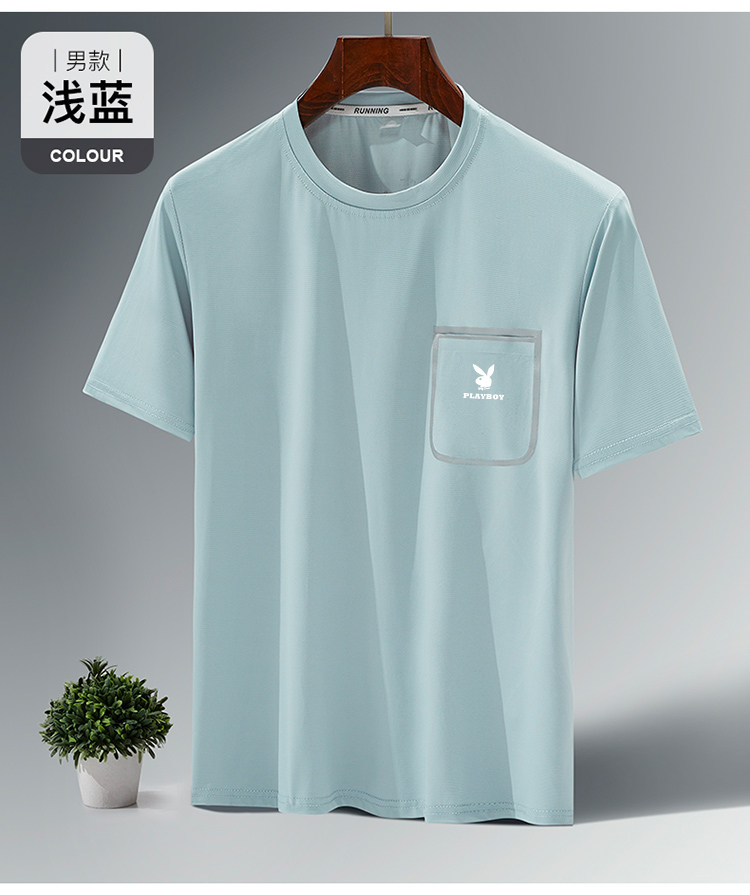 Playboy moisture-absorbing quick-drying short-sleeved men's summer new ice silk round neck T-shirt sports half-sleeved top male dad