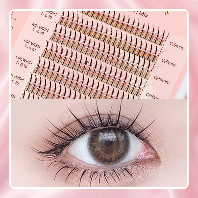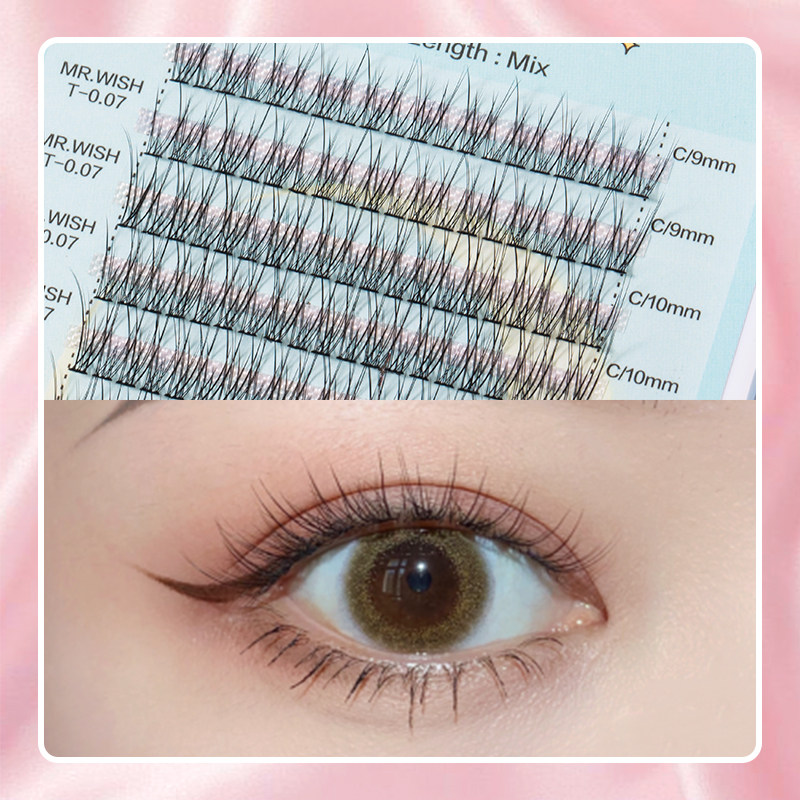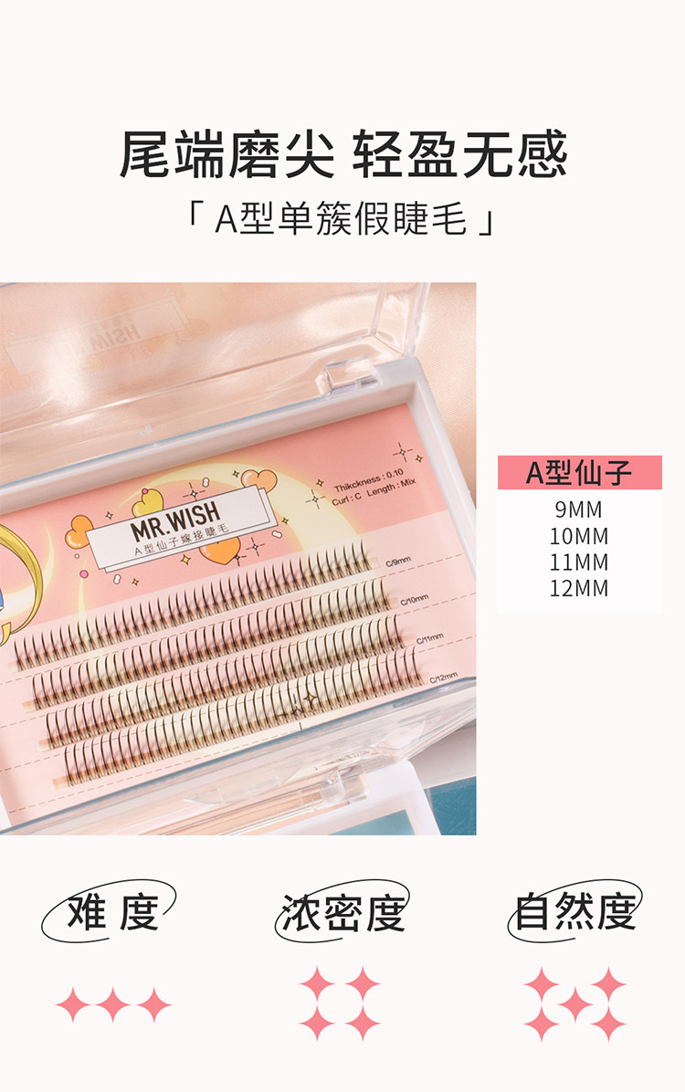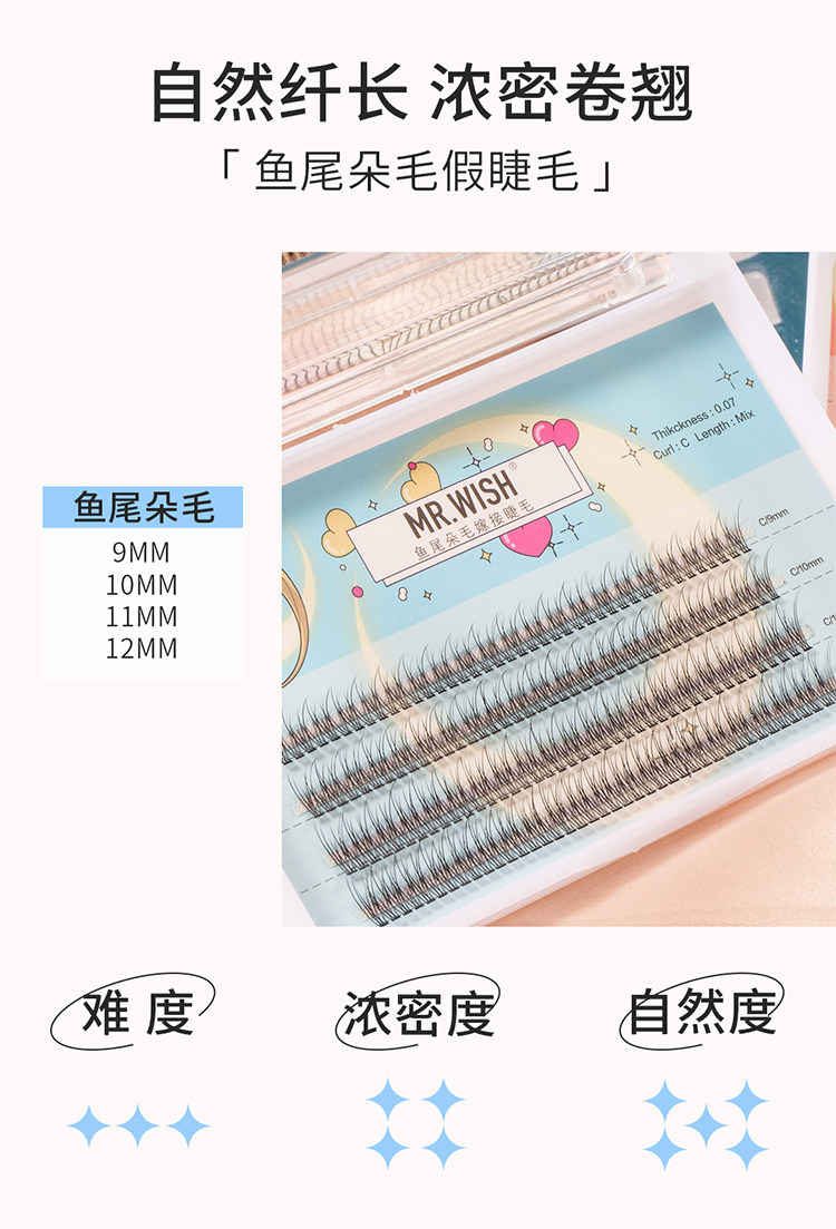 4 rows of fish tails, glue tweezers, 4 rows of fairies, glue tweezers, 4 rows of fish tails, 4 rows of fairies, glue tweezers, 4 rows of fish tails, 4 rows of fairies, lower eyelashes