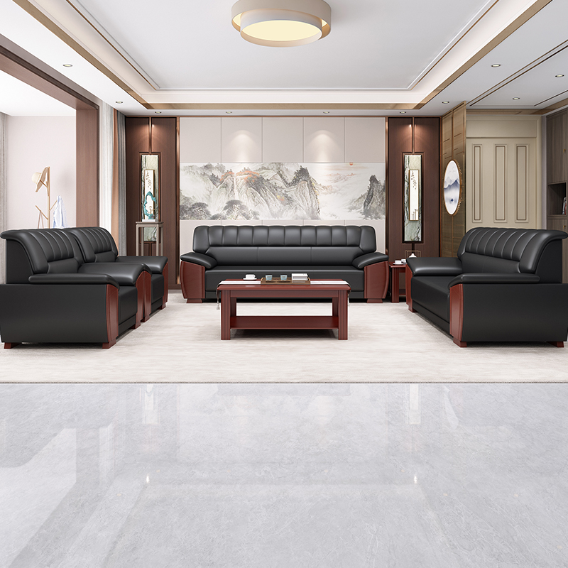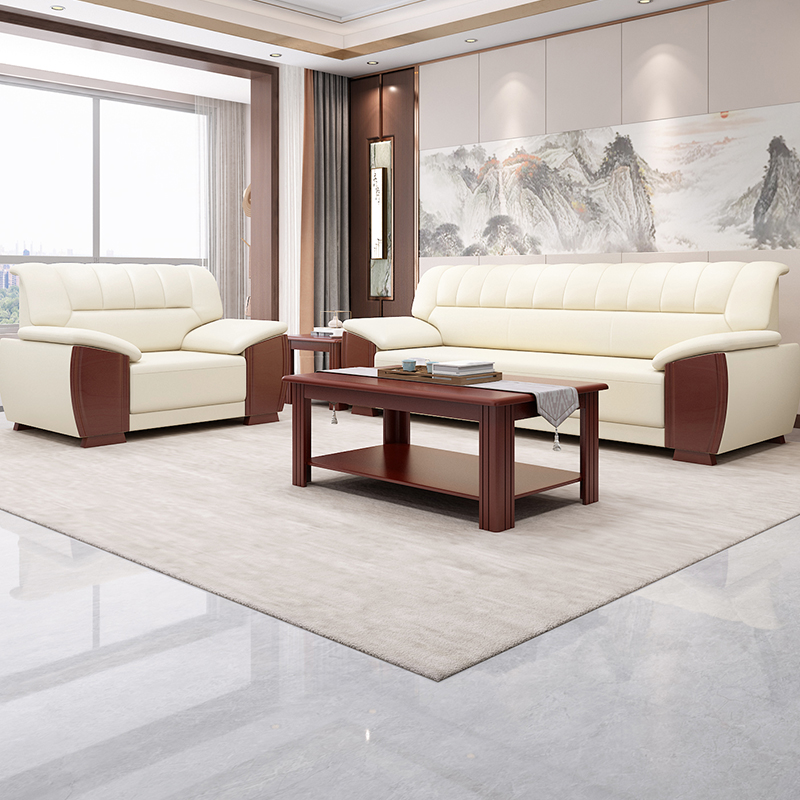 Office Fair Guest Zone genuine leather owner Manager Business Reception VIP Modern Chinese upscale solid wood sofas