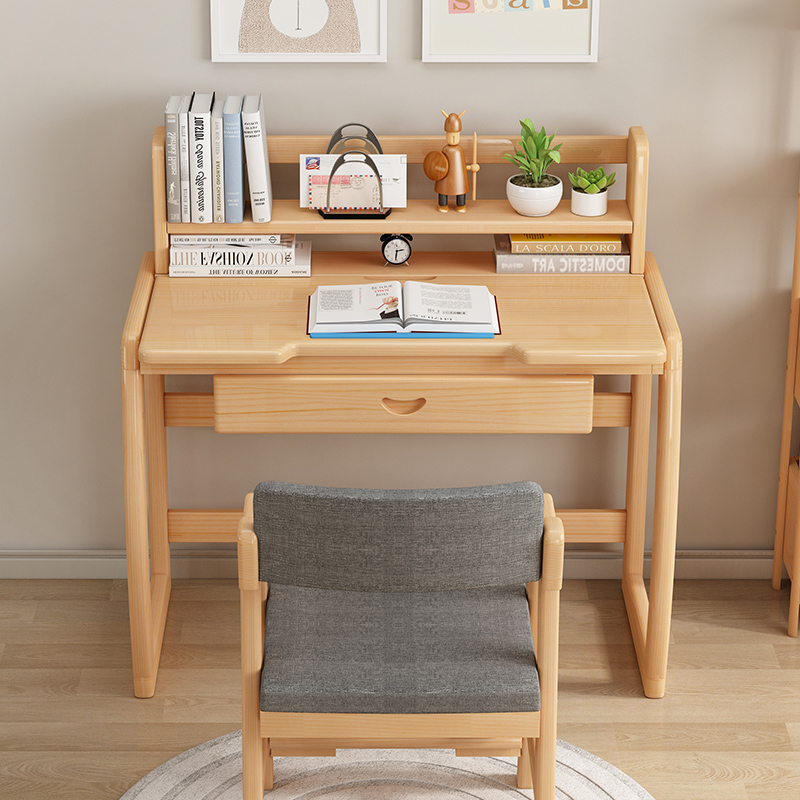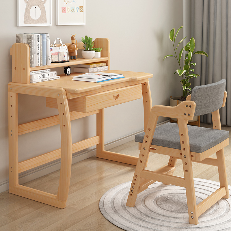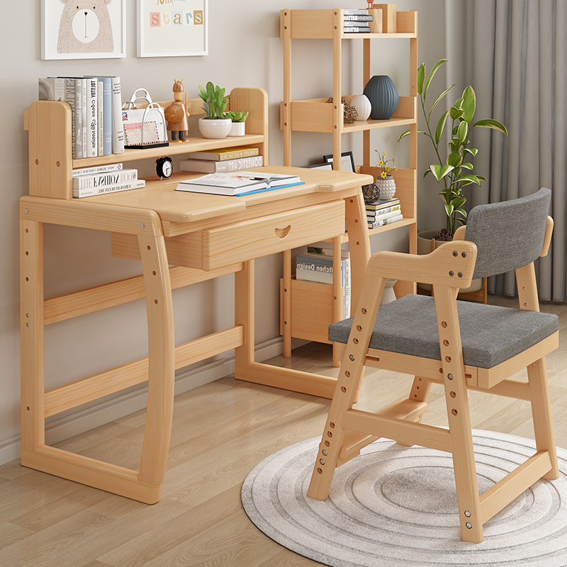 Solid wood children study table desk bookshelf integrated with lifting elementary school children desk Home Bedroom table and chairs