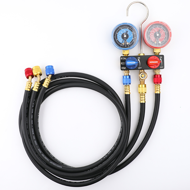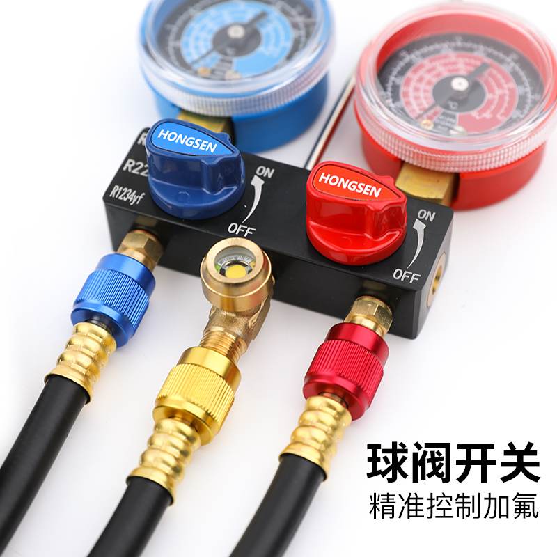 Hongsen M01-134-A automotive air conditioning liquid filling double gauge pressure gauge ball valve switch refrigerant gauge R134a fluorine gauge