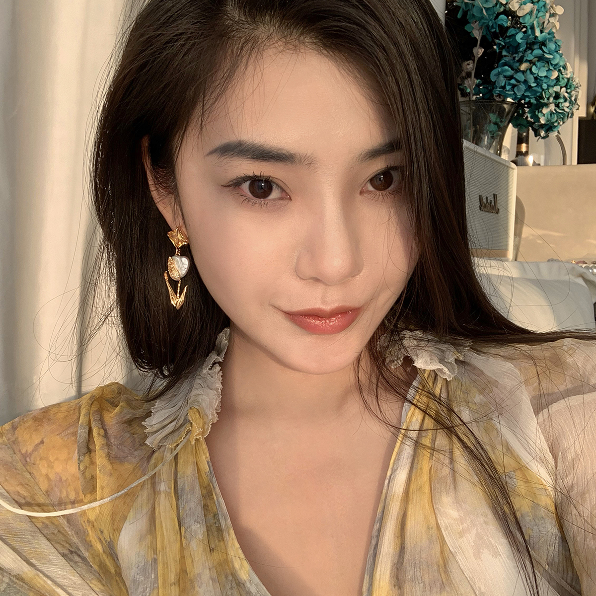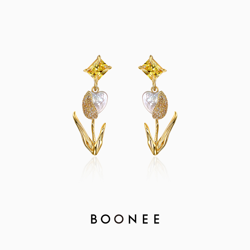 Boonee original design of gentle jewel pearl tulip needle temperament high-sensing silver needle earrings