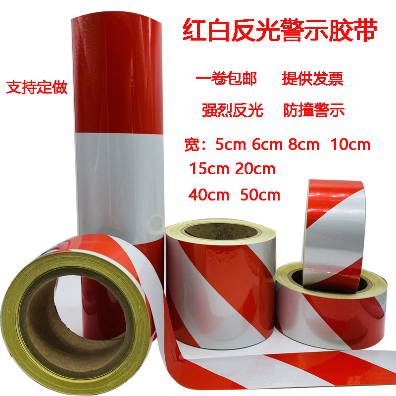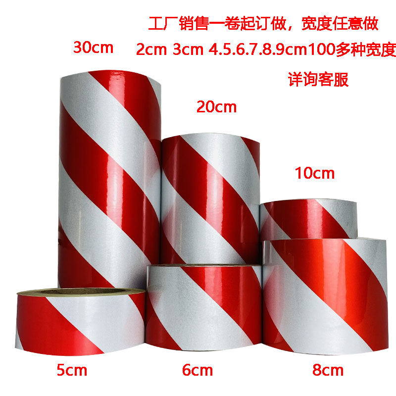 Red and white twill reflecting 5cm wide 25 m long red and white twill reflecting 6cm wide 25 m long red and white twill reflecting 8cm width 25 m long red and white twill reflecting 10cm width 25 m long red and white