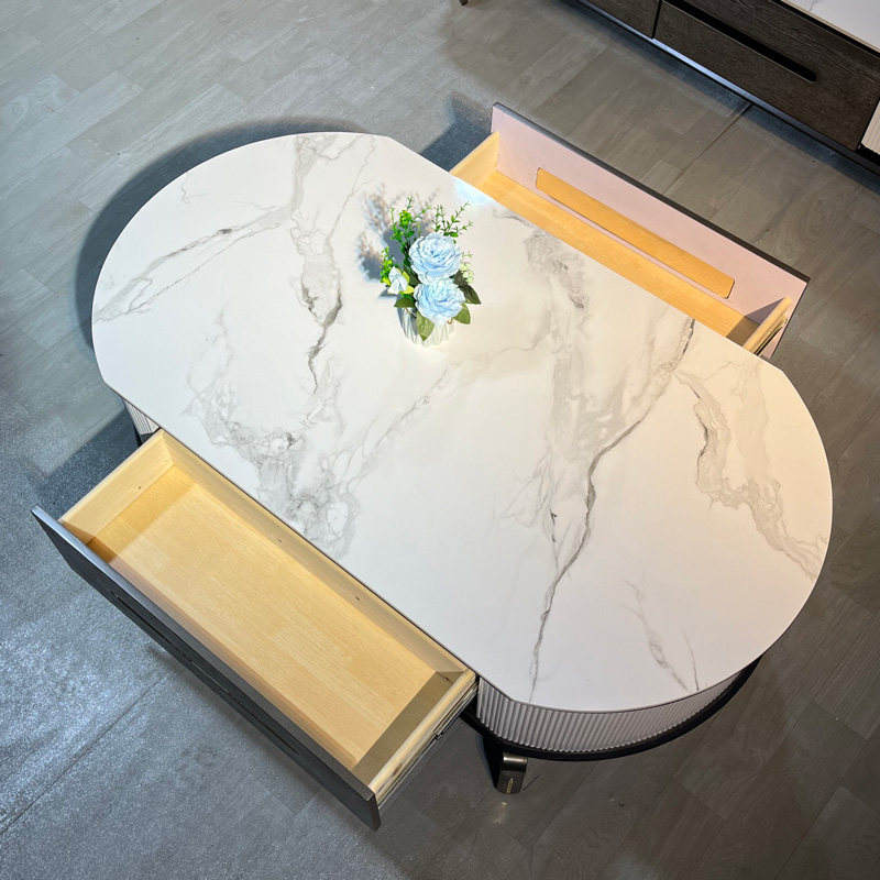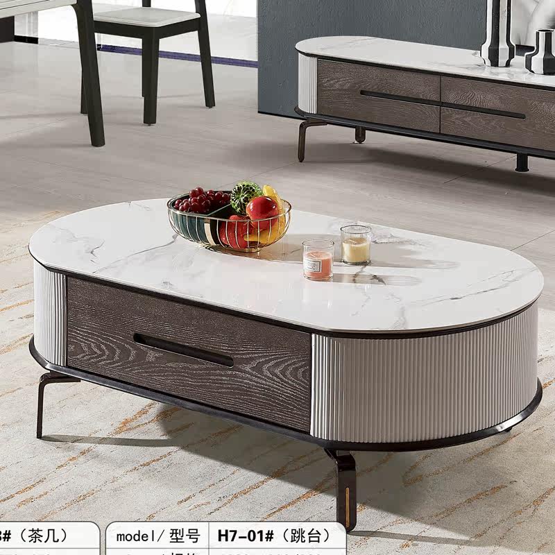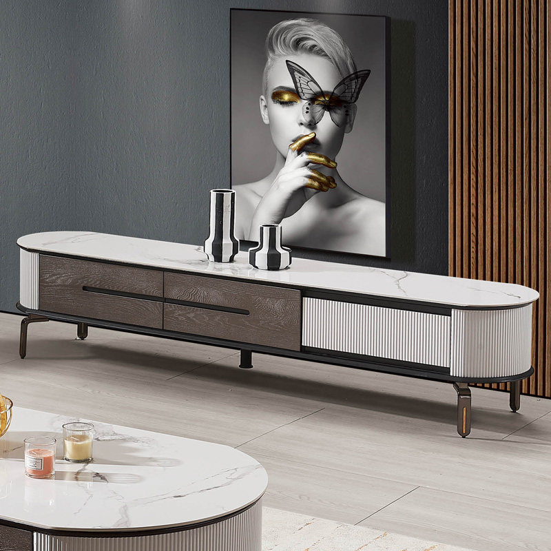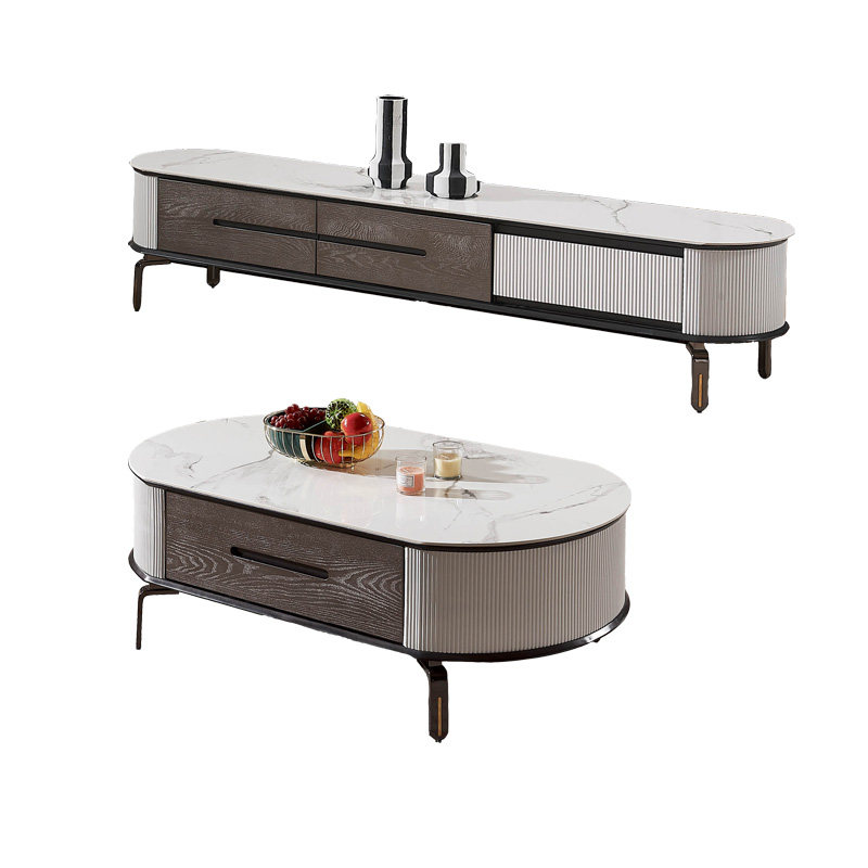 Light luxury slate TV cabinet coffee table combination oval floor cabinet gray and white modern minimalist small apartment ins Nordic