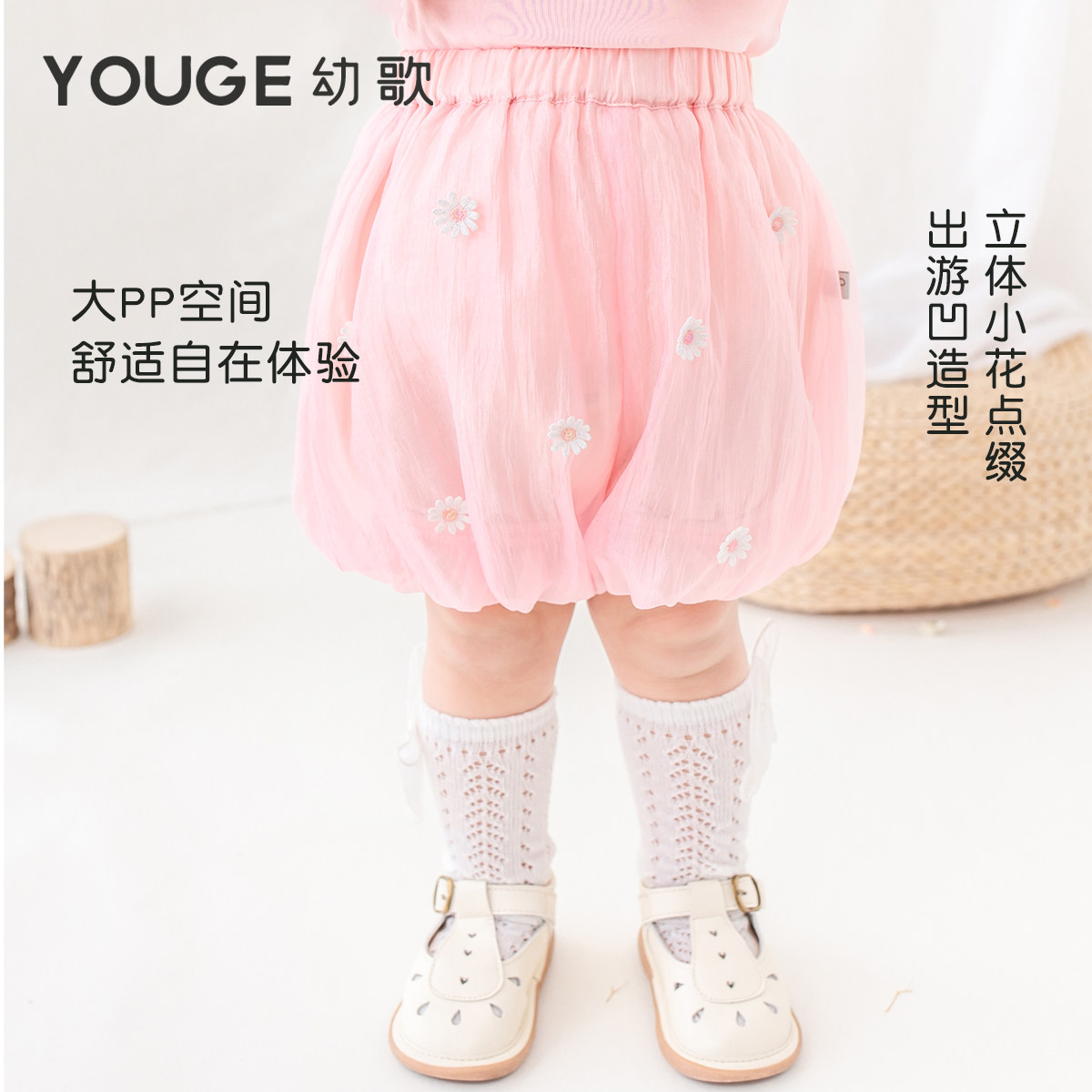 Youge young song girl sweet and beautiful flower solid fluffy feeling mesh dress pants baby light and flower bud shorts wave