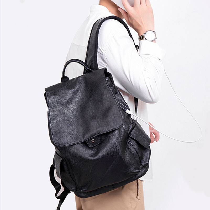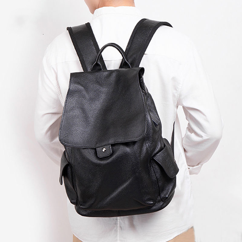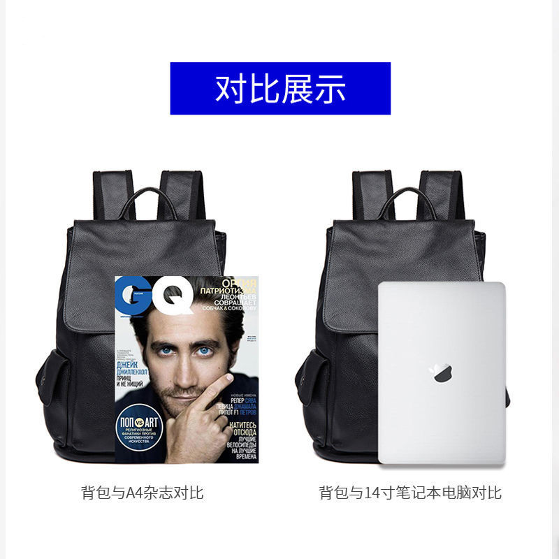 Genuine Leather Double Shoulder Bag Men's Fashion Bull Leather Men's Backpack Youth Machine Chia School Bag Leisure Travel Computer Bag Tide-Taobao