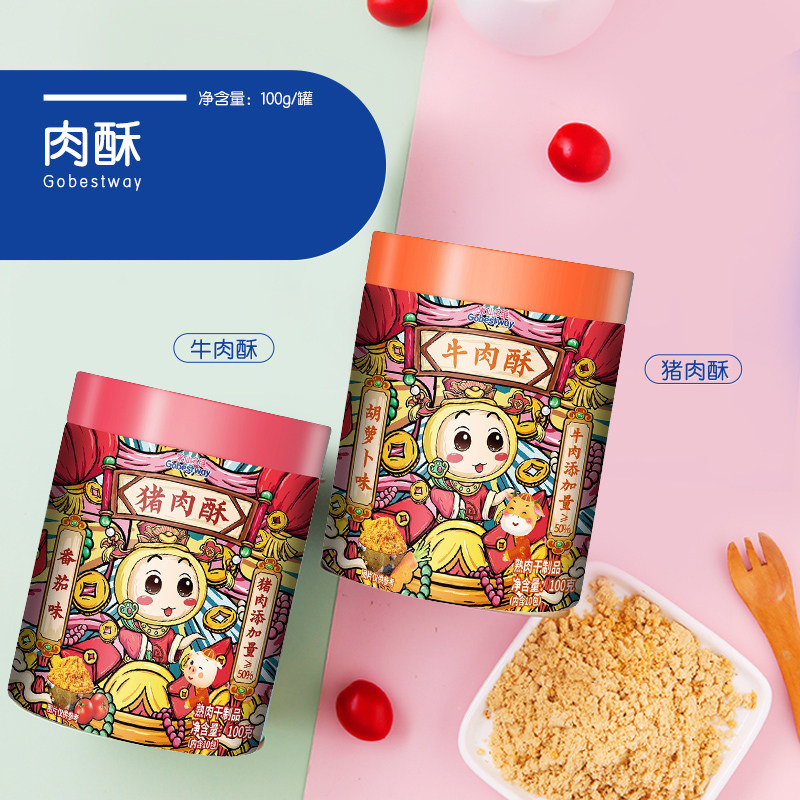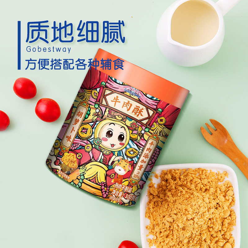 Guoxian Multidimensional Children's Bibimbap Seasoning Pork Floss Baby Snacks Pork Beef Crisp 100g can