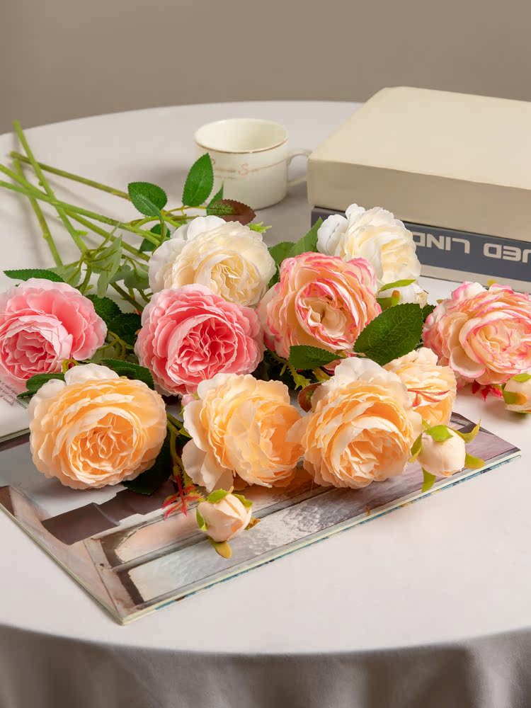 Nordic 3 Heads Ocean Peony Emulation Flower Dining Room Living-room Decoration Fake Flowers Artificial Plastic Evergreen Flowers Peony Flowers Furnishing