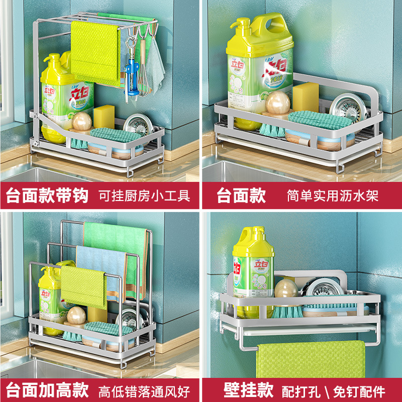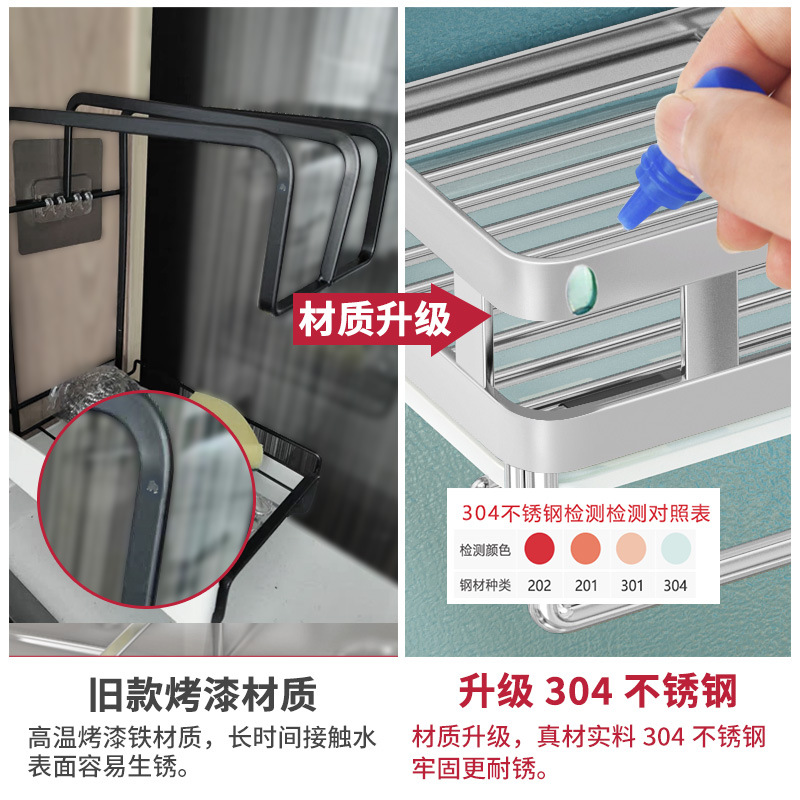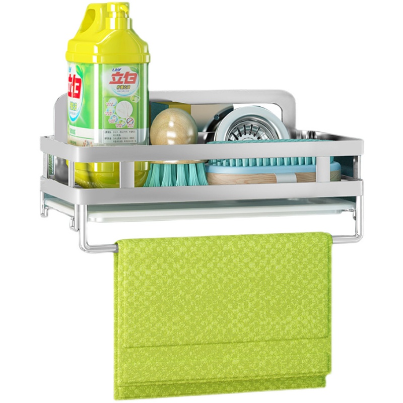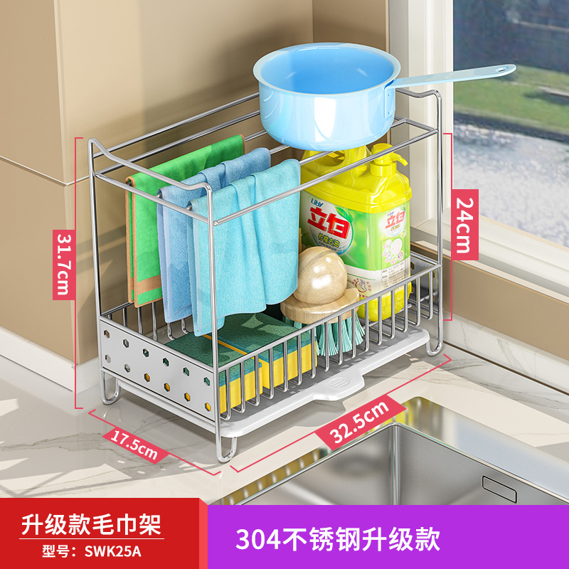Stainless steel kitchen sink cleaning wall-mounted drain storage rack rag towel sponge desktop pull rack