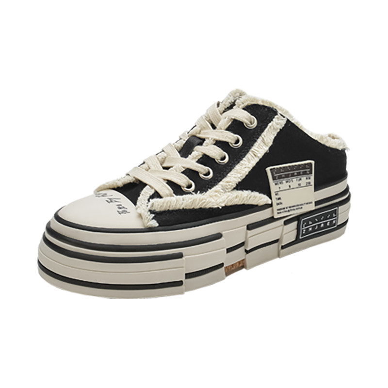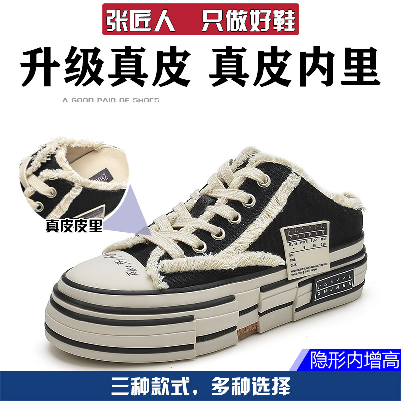 Canvas beggar shoes Wu Jianhao Tongtou Baotou Slippers Female Summer Exterior Wearing small inside heightening women's shoes 8cm heightening-Taobao