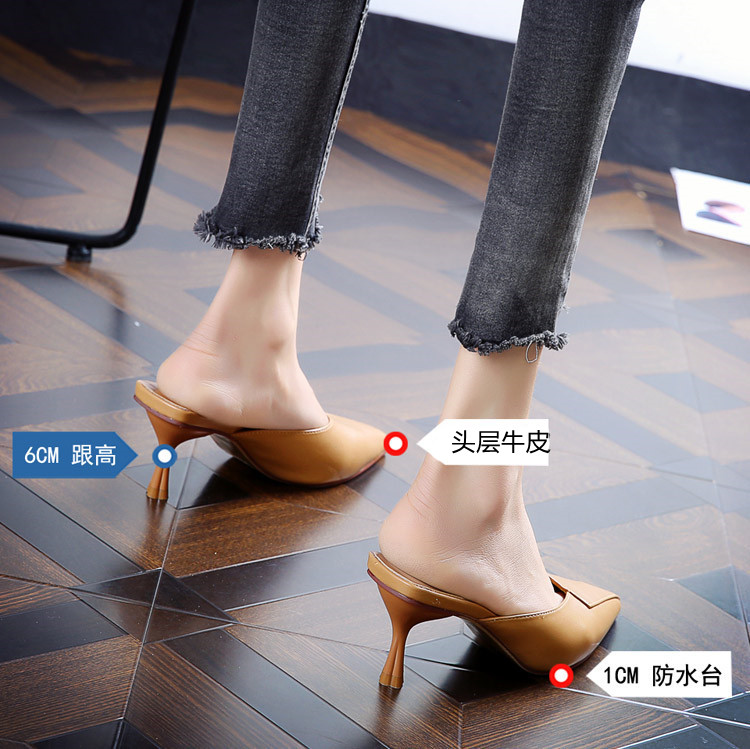 Baotou half slippers wear new leather blast in the summer of 2023, drag fashion pointed and high heels