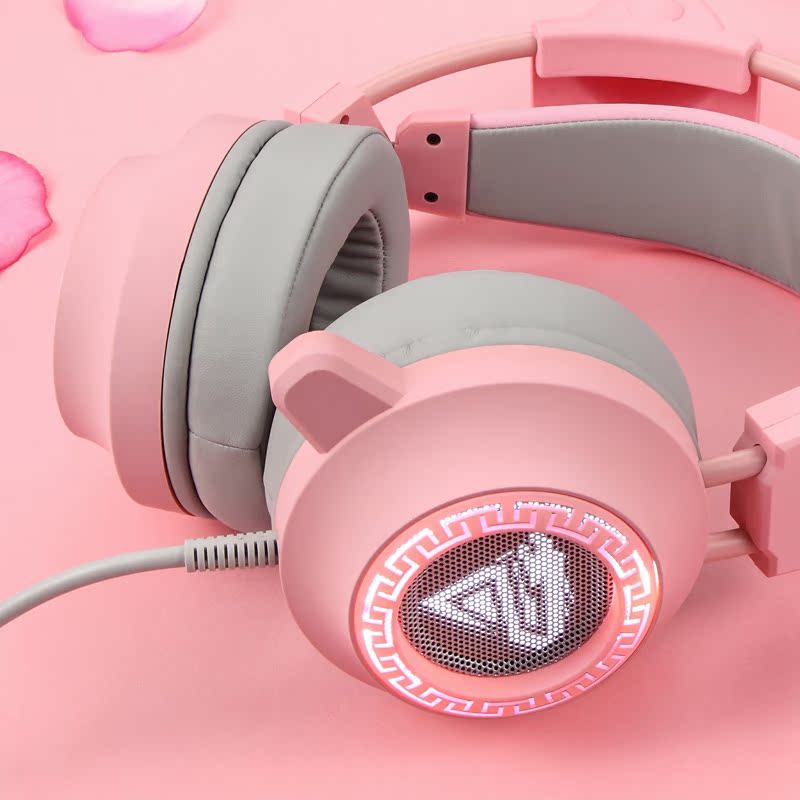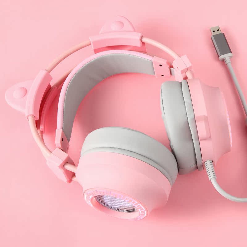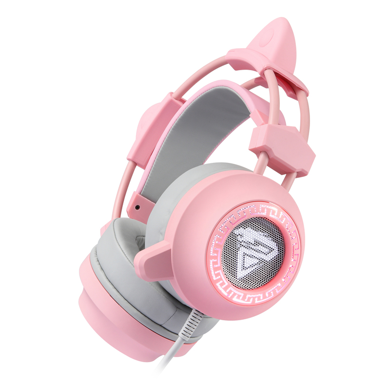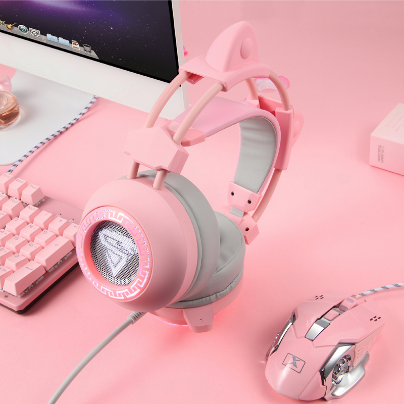 British and European pink cat ear headphones head-mounted girls cute 7 1-channel e-sports game listening to the sound debate laptop headset with wheat girl model cf lol apex League of Legends