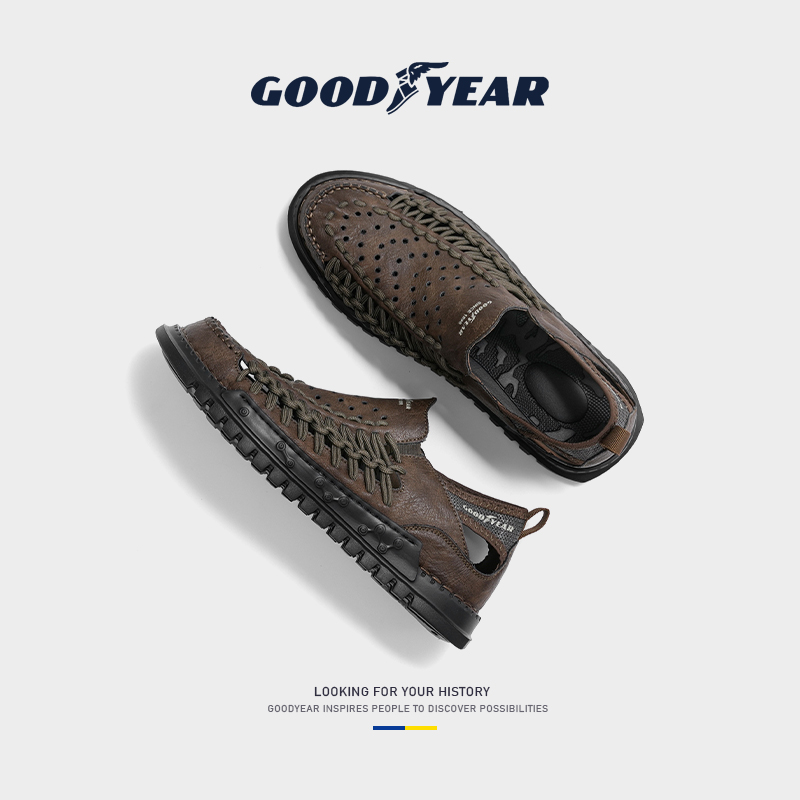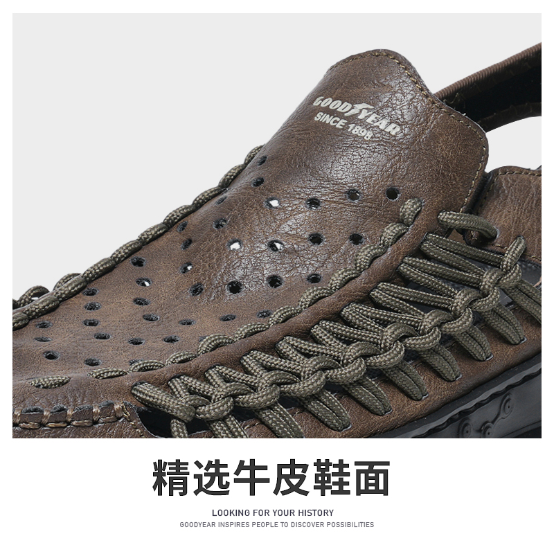 Goodyear genuine leather Baotou sandals men's summer new soft-bottom casual beach shoes men weave holes shoe men