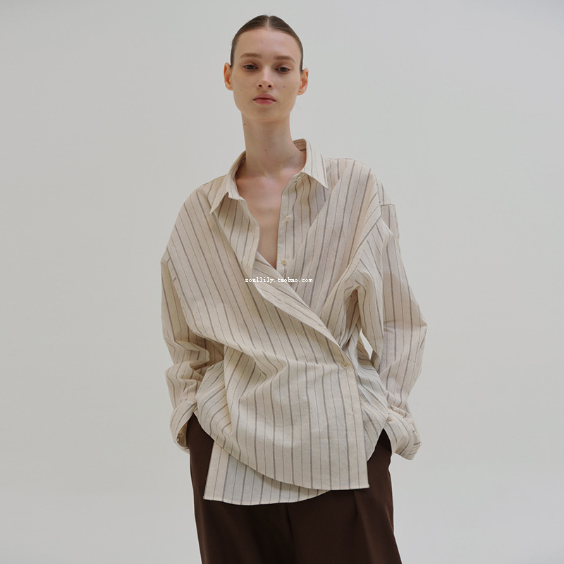 moia loose striped shirt female design sense niche high-end long-sleeved casual shirt female spring and summer 2022 new
