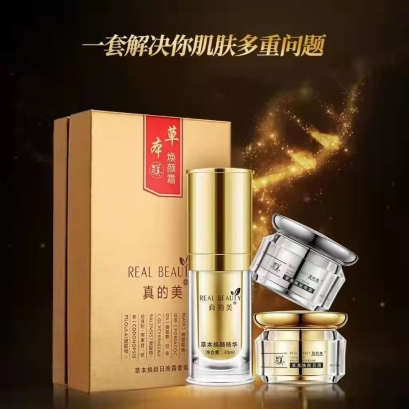 Really beautiful herbal rejuvenating day and night cream set box essence three-piece set to improve dark yellow spots and brighten skin tone