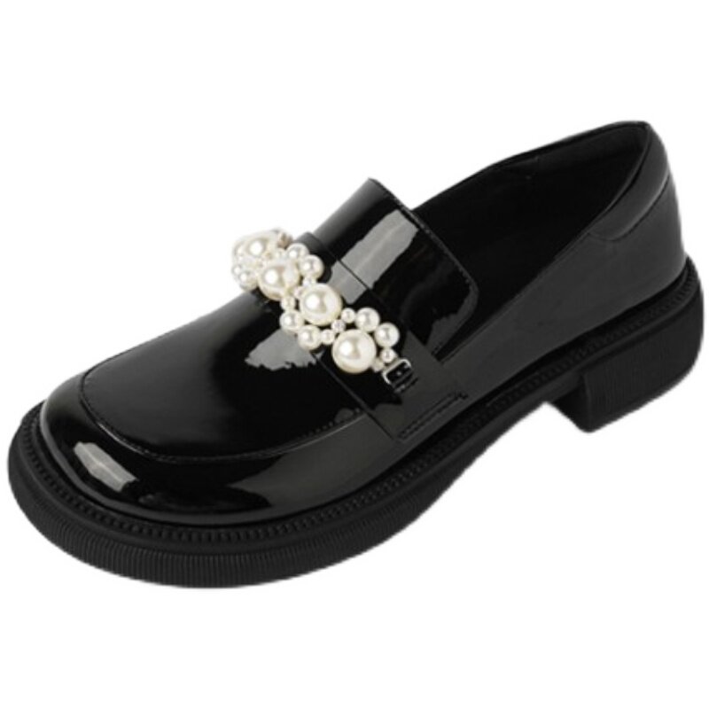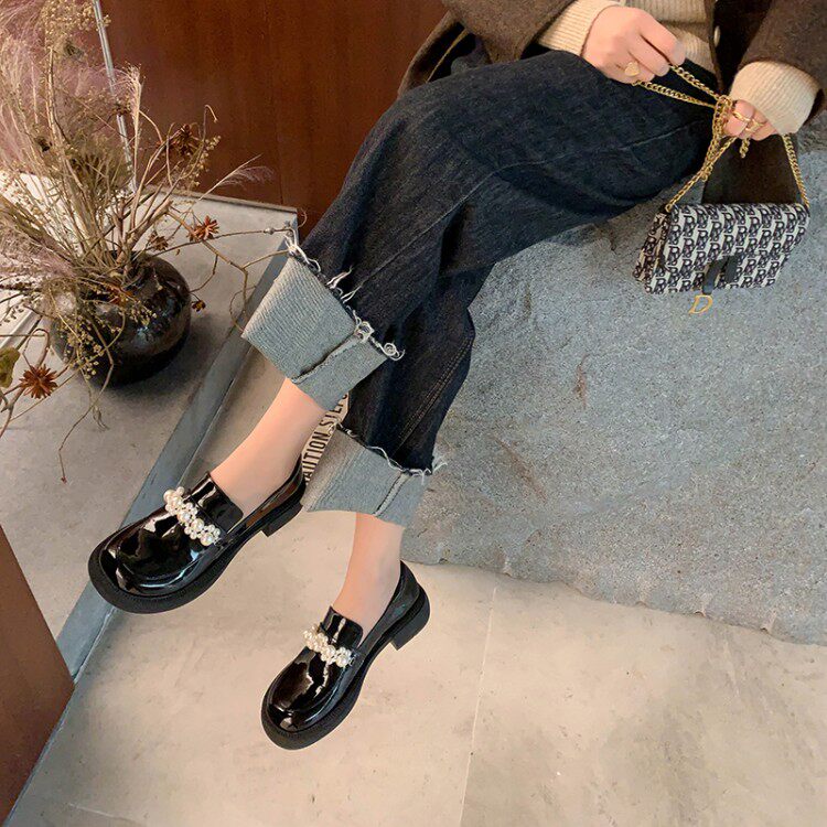 2022 spring and summer new thick-soled small leather shoes autumn thick heel pearl British style leather loafers women's retro shoes
