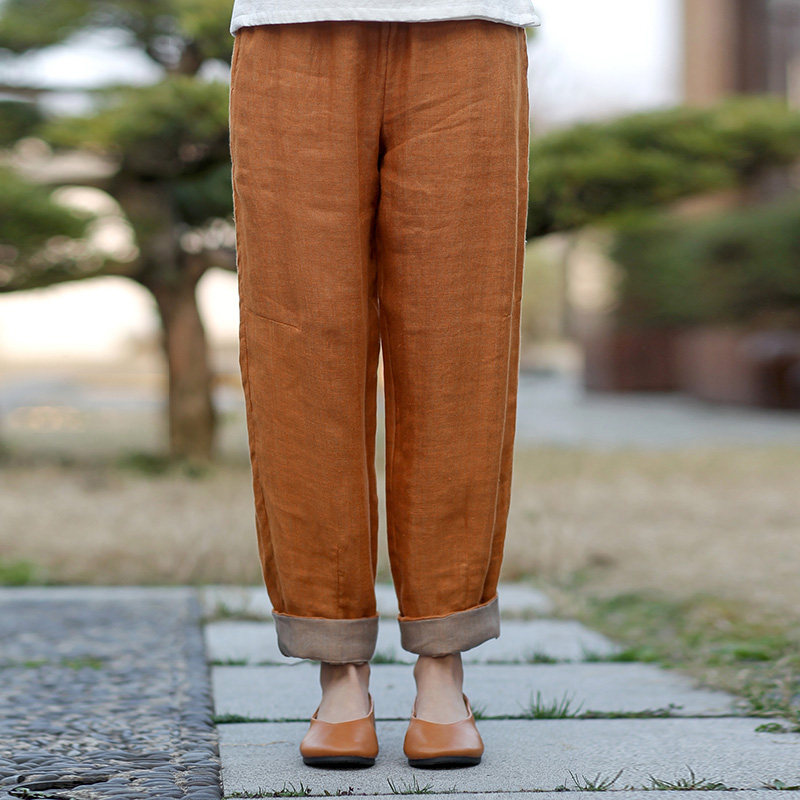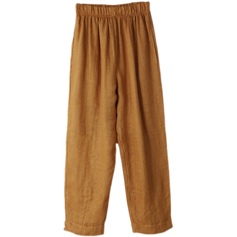 2022 Factory shop springtime caramel color linen commute tea suit with Chinese style retro Chinese wind long pants Harun pants