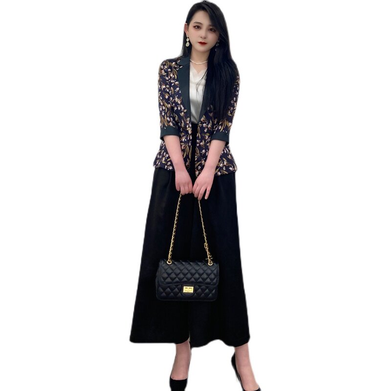 Heavy Weights True Silk Suit Jacket Woman Temperament Minor West Suit Foreign Pie Printed Mulberry Silk Blouse 2022 New