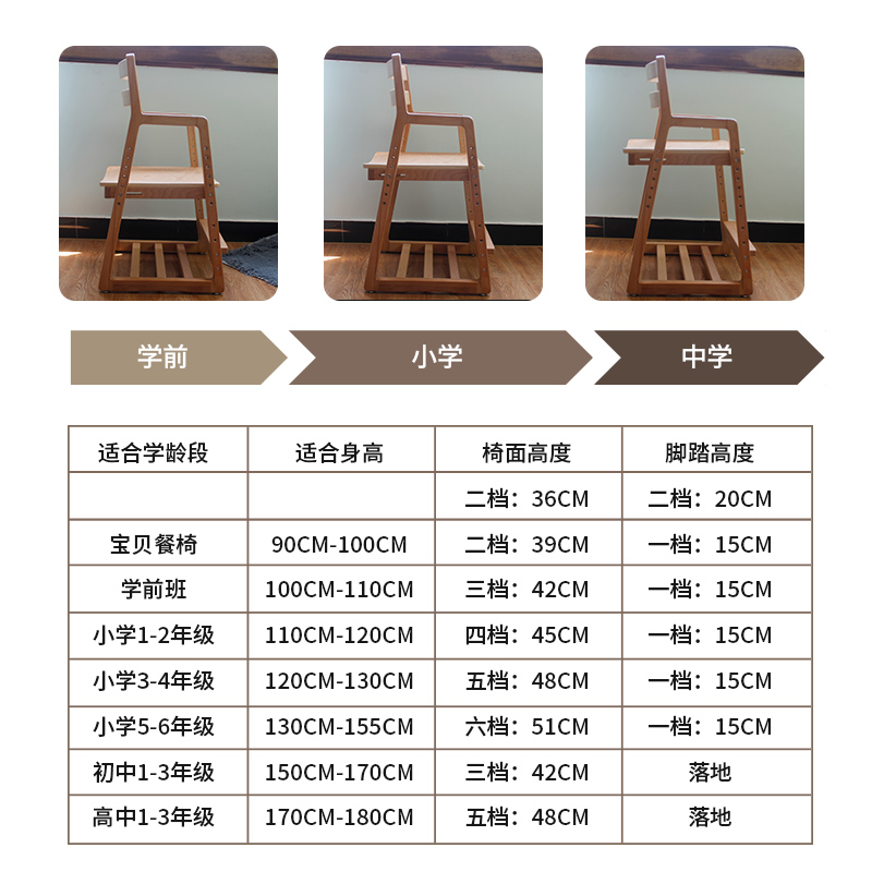 Qijian children's study chair desk office chair primary school student home lift solid wood seat imported beech wood chair