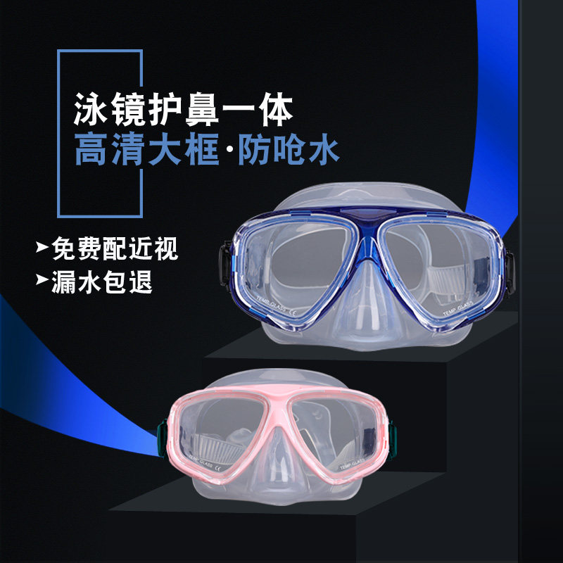 Free diving mirror Swimming snorkeling mirror male and female large frame high-definition swimming goggles glasses shield nose integrated myopia equipment
