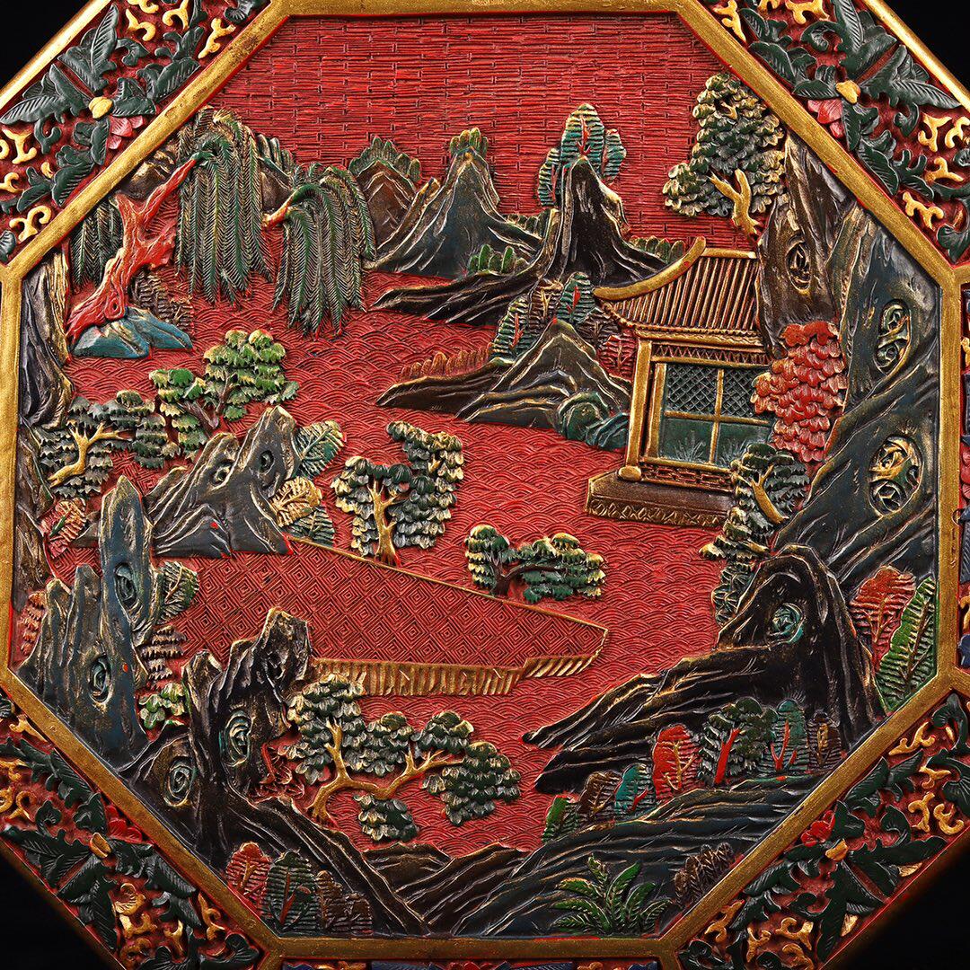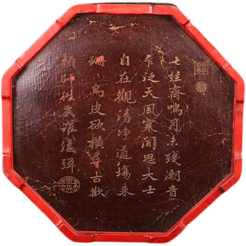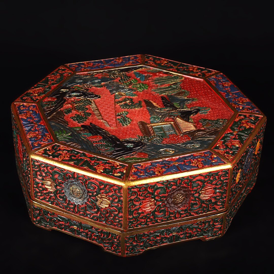 Old Tibetan old Beijing lacquer ware jewelry box Wen play box lacquer ware painted landscape artistic conception octagonal storage box ornaments